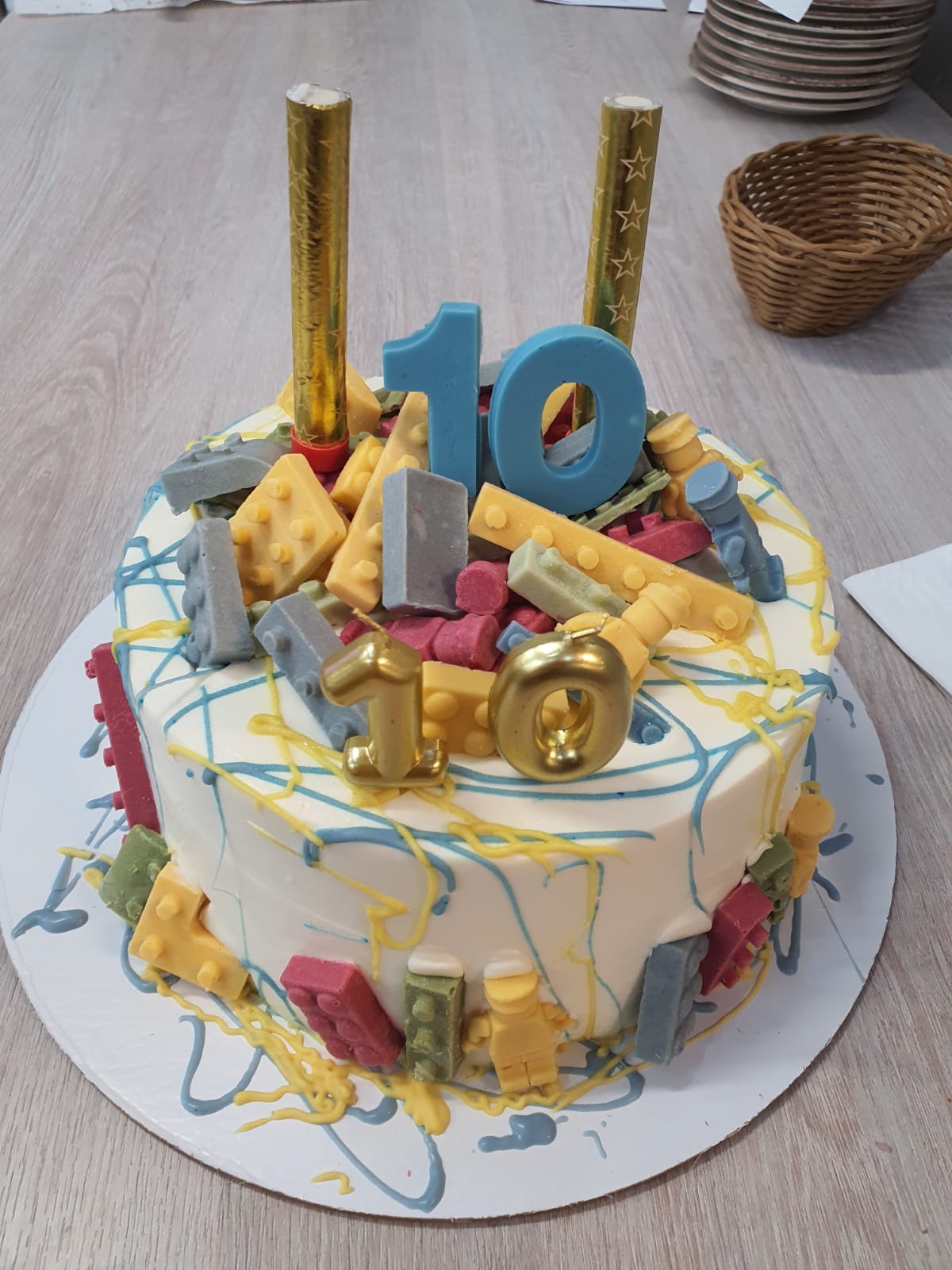 заказывали на день рождения ребенка на годик торт синий с фигурами и цифрой 1, начинка сметанник с ананасами, очень вкусный торт, как на картинке, остались довольны заказом, привезли все вовремя, несмотря на транспортировку уже мы сами с ним ездили на фотосессию и игровую, он выжил и форму не растерял, но лучше так не делать с тортом