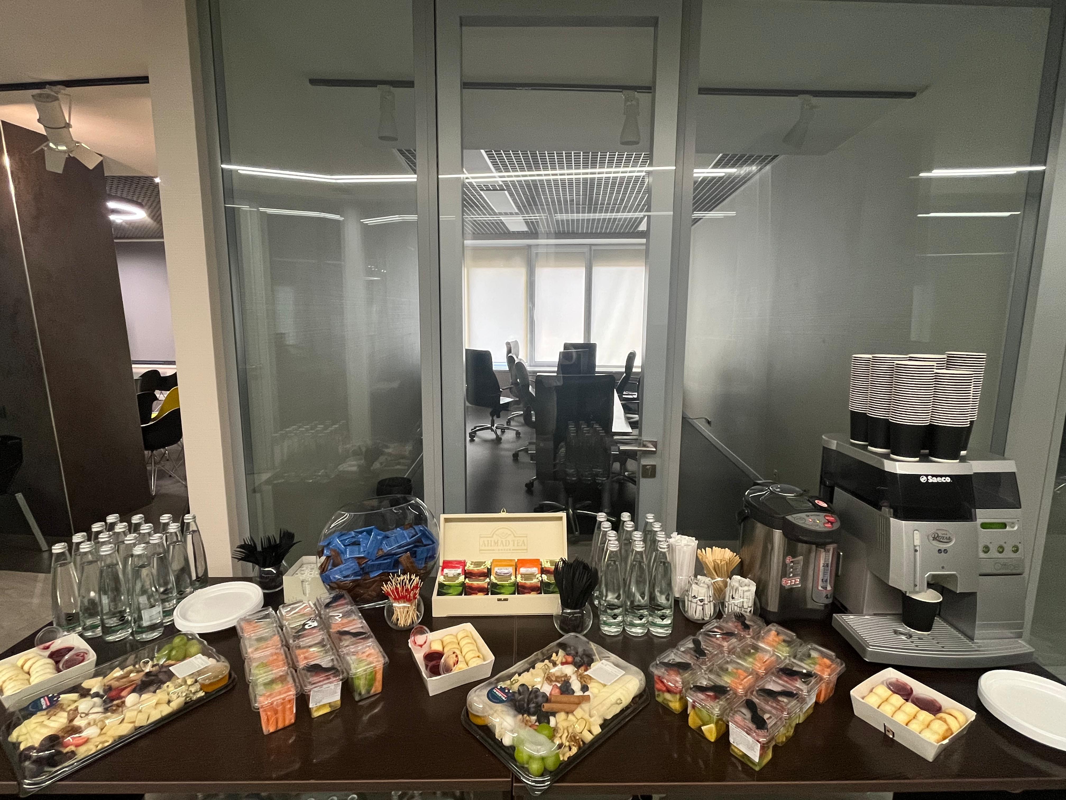 Заказывала большой фуршет на 80-летие отцу. В заказе было все - брускетты, блинные мешочки, канапе, салаты, мясные, рыбные и овощные шашлычки, мини-эклеры и торт. Все блюда были свежие и вкусные, еда понравилась всем, включая старшее поколение (им не хватило только соленых огурцов :)) Особенный восторг вызвали блинные мешочки и почему-то овощи (морковь, перец с соусом Цезарь, они были очень свежие и морковка не "мыльная", а настоящая, со вкусом). К торту у меня было много пожеланий - изменить дизайн, украшения и начинку (хотела Молочную девочку, а в меню для данного вида торта были предусмотрены другие начинки), все пожелания учли, сделали все так, как просила. Торт очень вкусный, недоеденных кусков не было :). В процессе заказа возникла пара нюансов, менеджер оперативно их решил, заказ доставили точно в срок. В итоге все гости и именинник остались очень довольны. Большое спасибо, совершенно точно обращусь за кейтерингом снова!