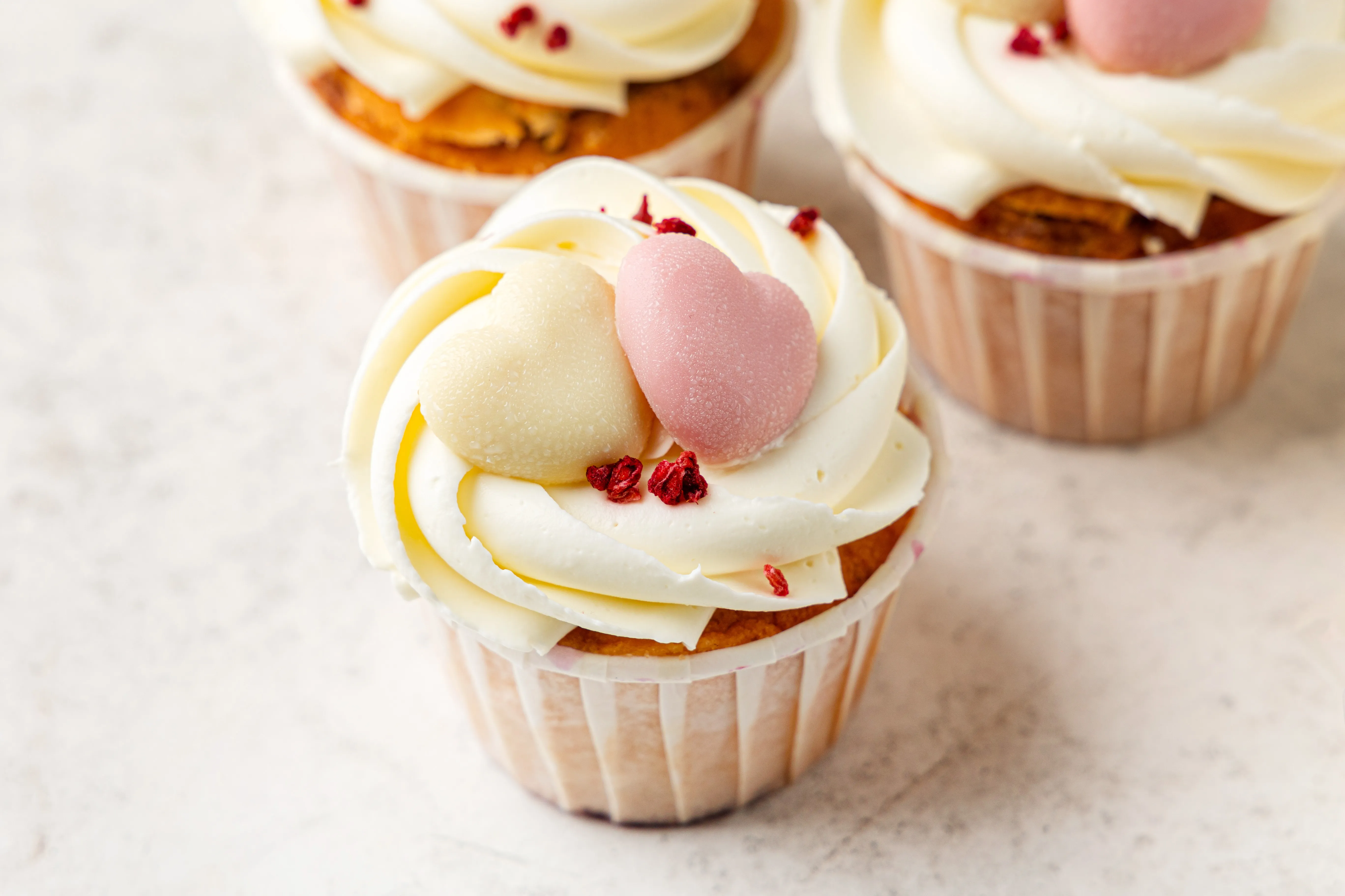 В комплекте — 5 капкейков. Начинка на выбор: лесная ягода, черный лес или банановая.