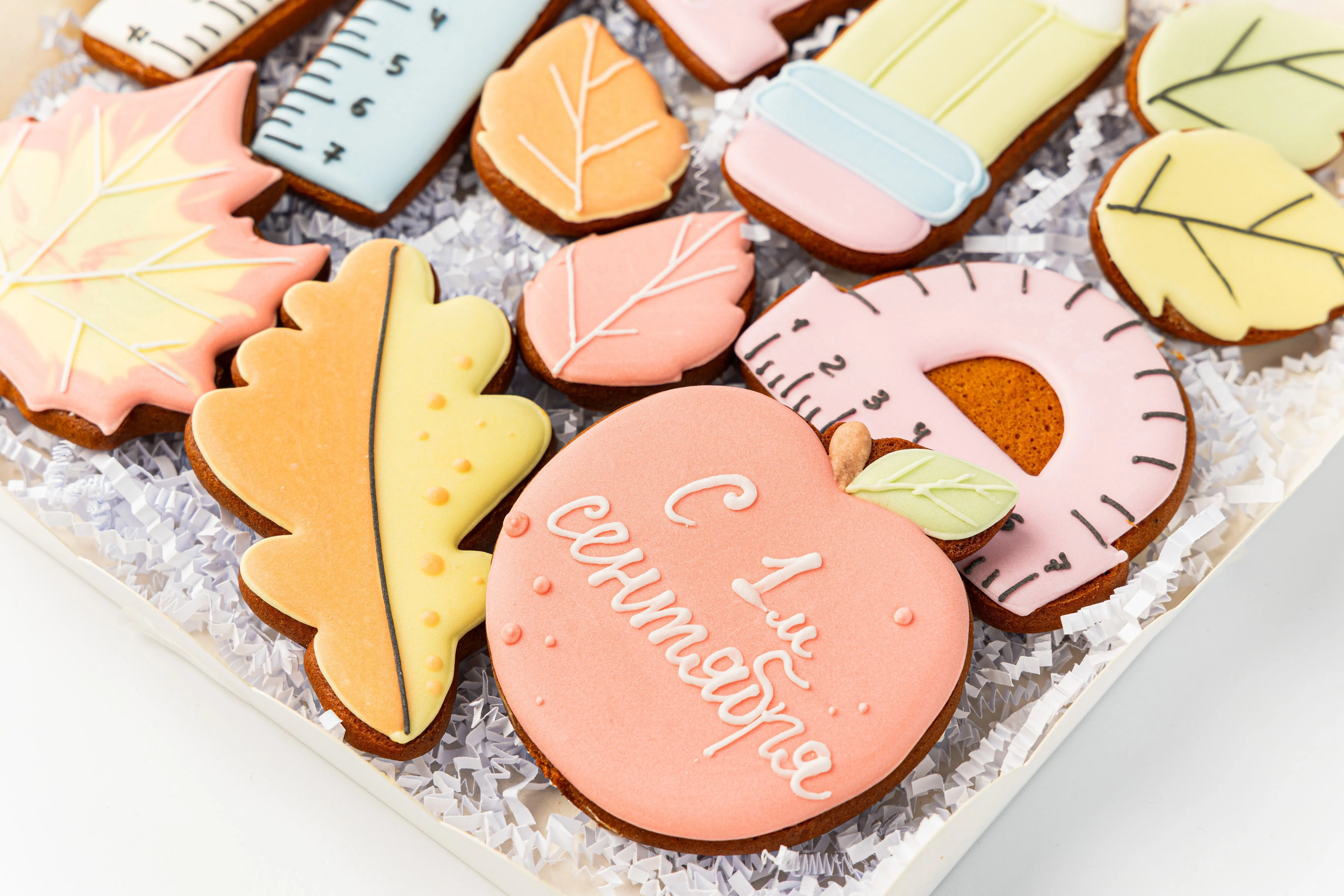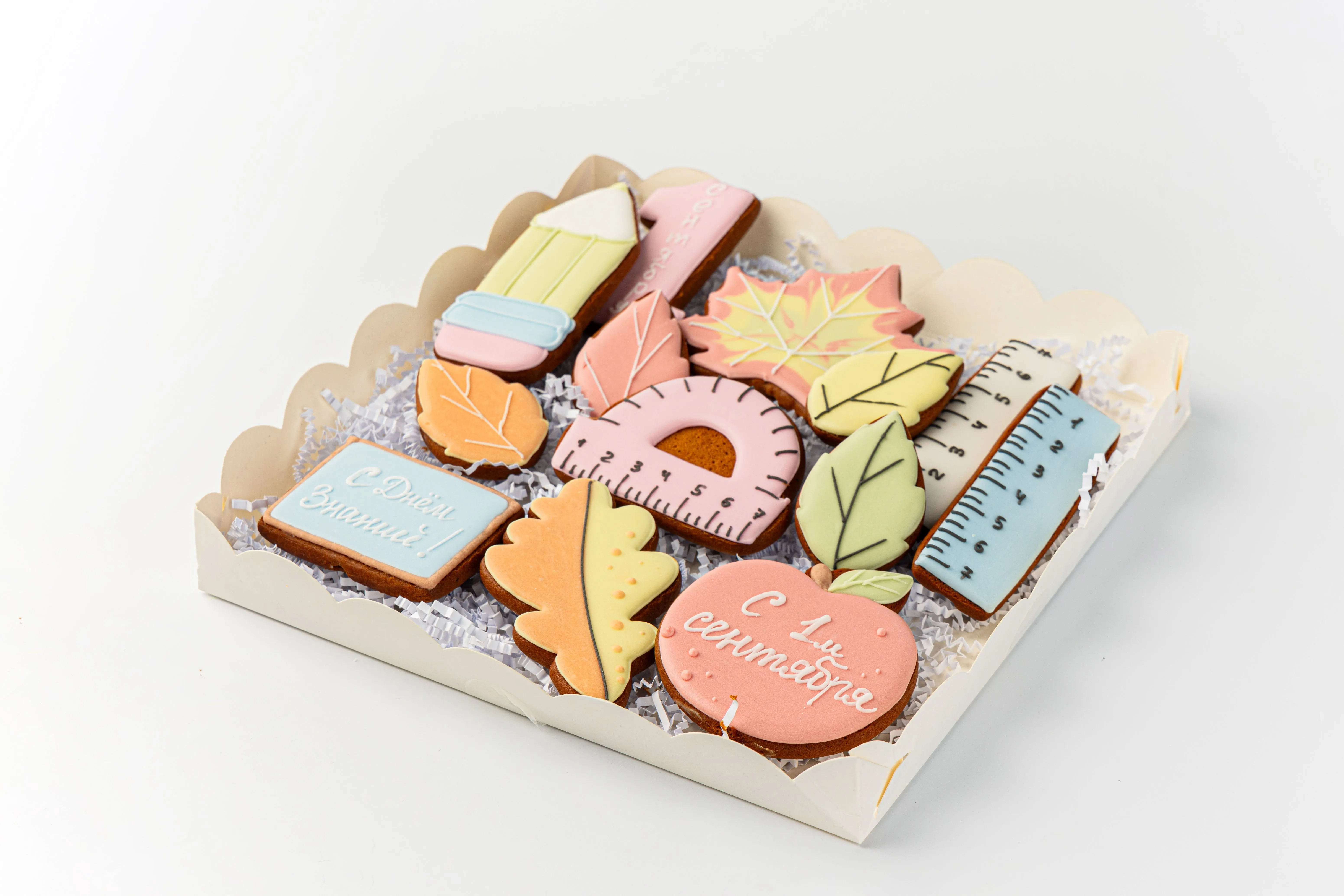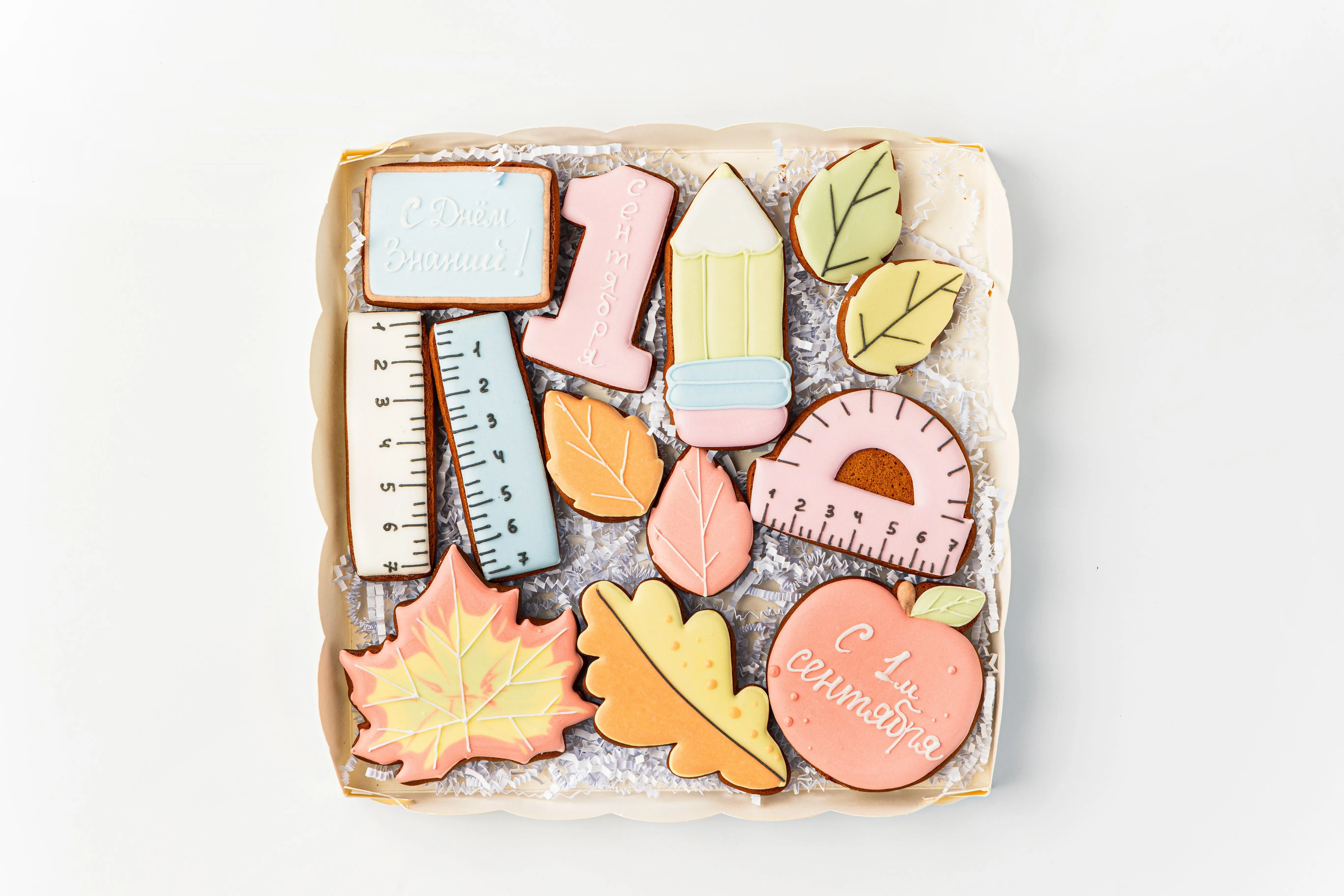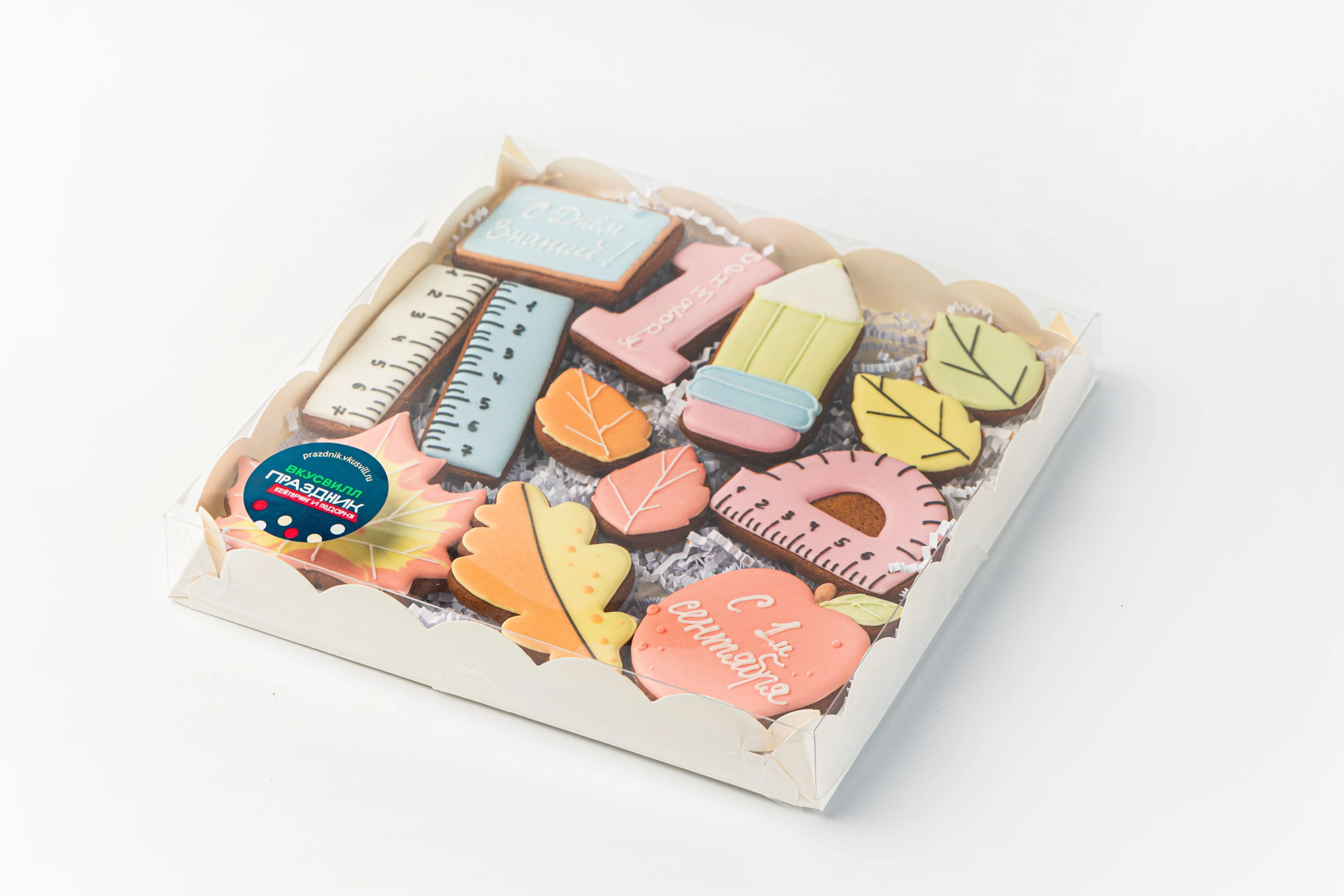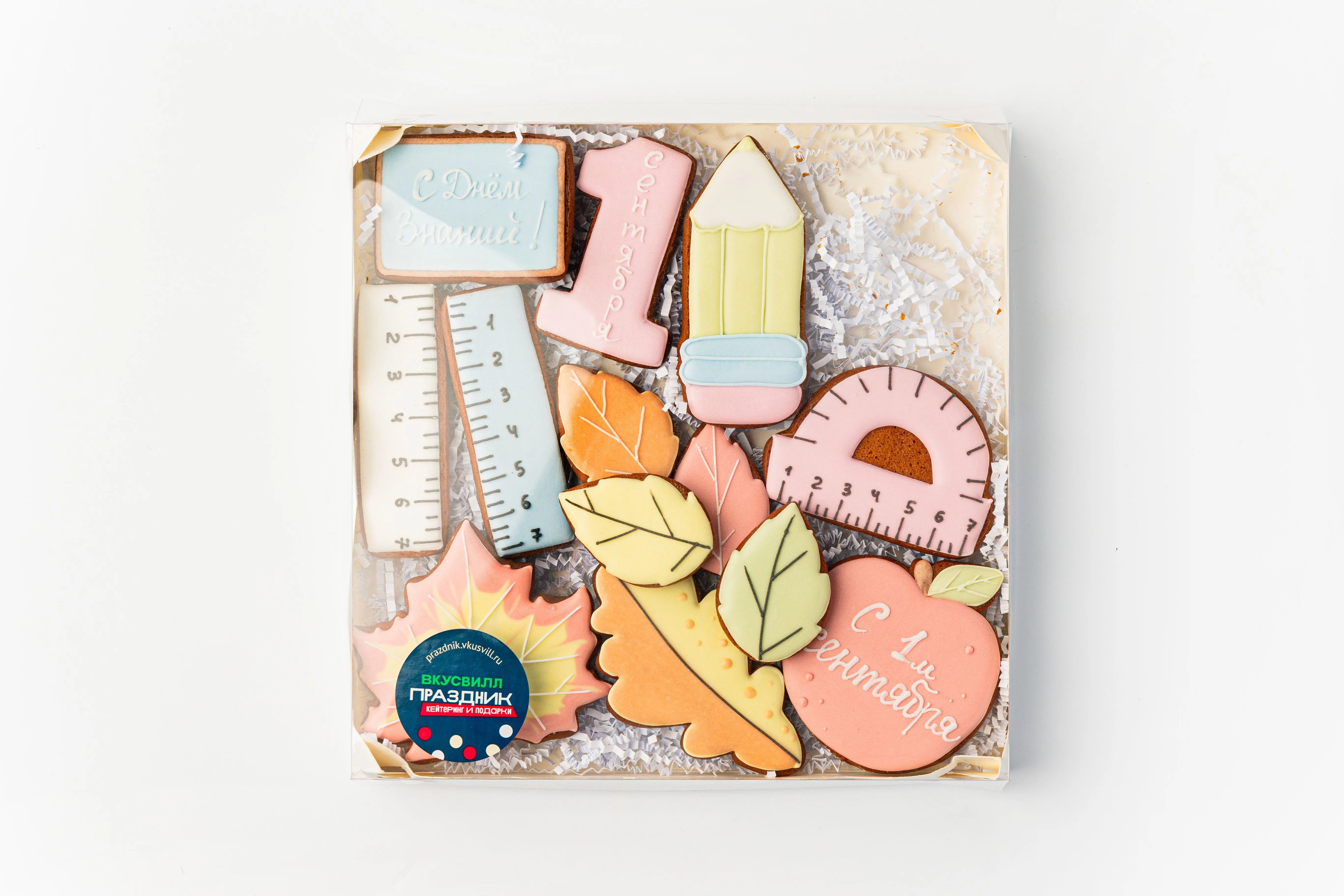 Набор пряников «Здравствуй, школа!» — это вкусное и красивое приветствие нового учебного года. В наборе собраны яркие и оригинальные пряники в форме школьных принадлежностей и символов знаний. Они станут отличным дополнением к праздничному столу, подарком учителю или просто приятным сюрпризом для школьника. С такими пряниками возвращение в школу будет слаще и радостнее! 15 натуральных имбирных пряников ручной работы в подарочном боксе. Вы можете заказать любую форму, цвет нанесения, текст пожелания или выберите понравившуюся форму из фотогалереи.