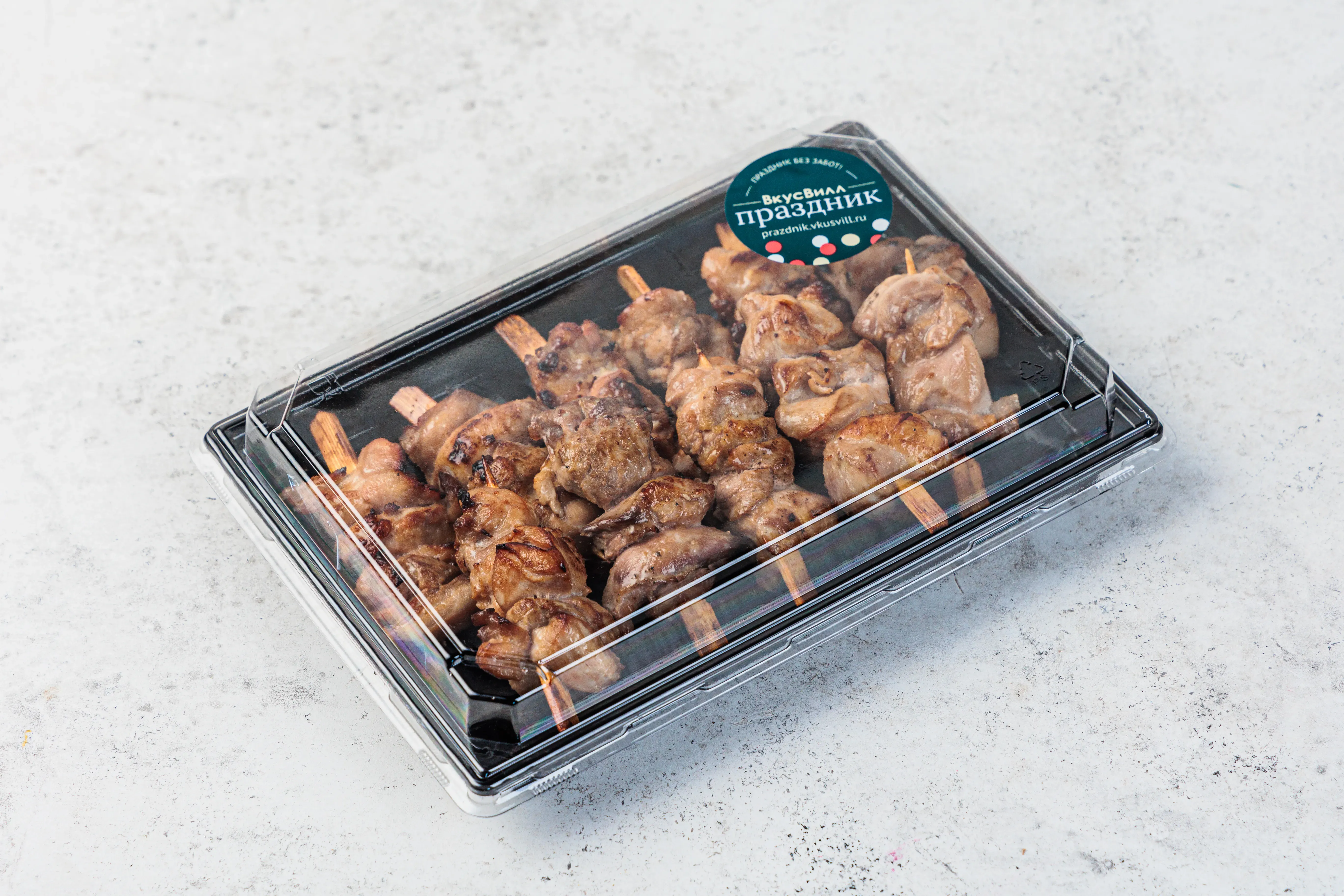 В составе 12 мини-шашлычков.