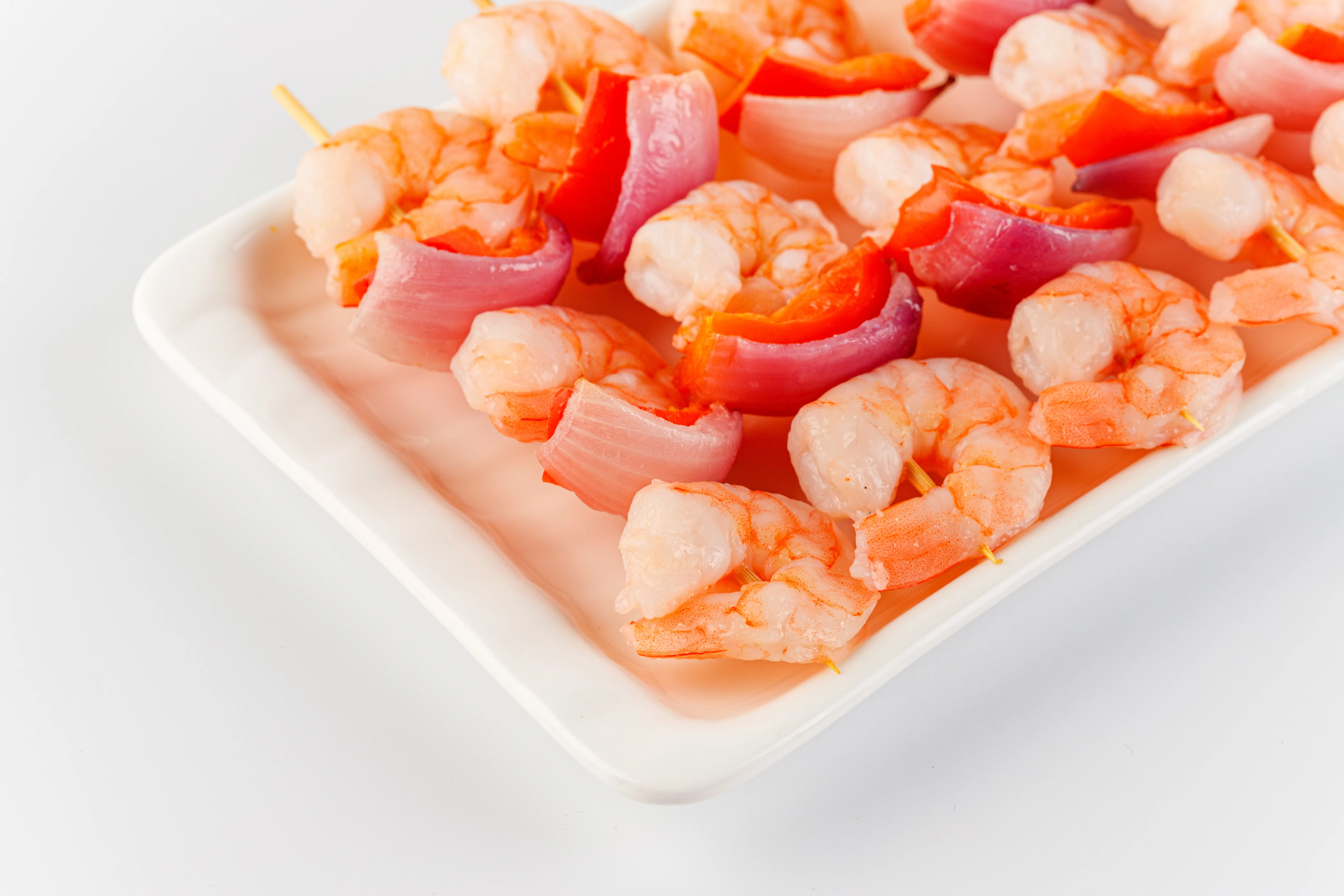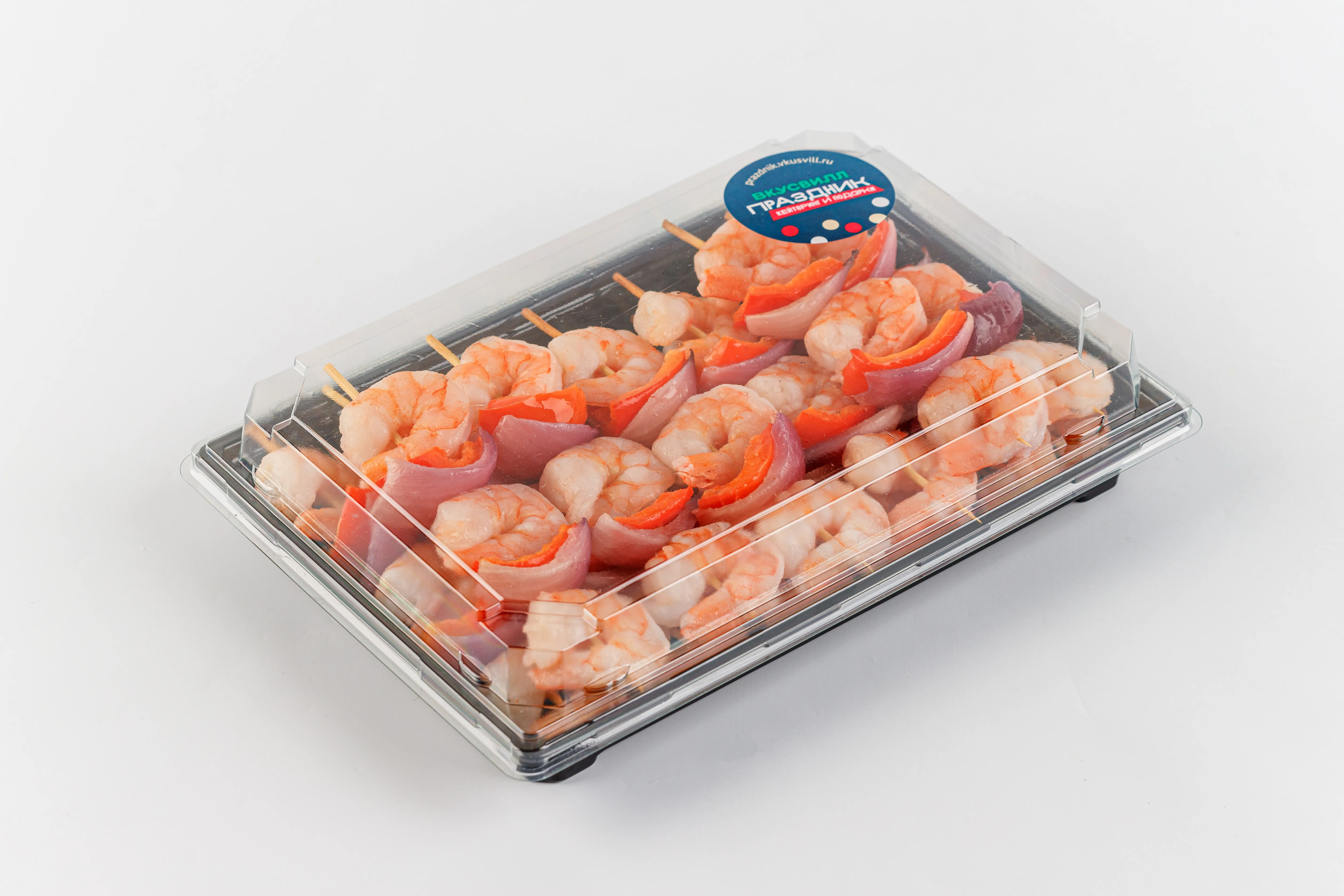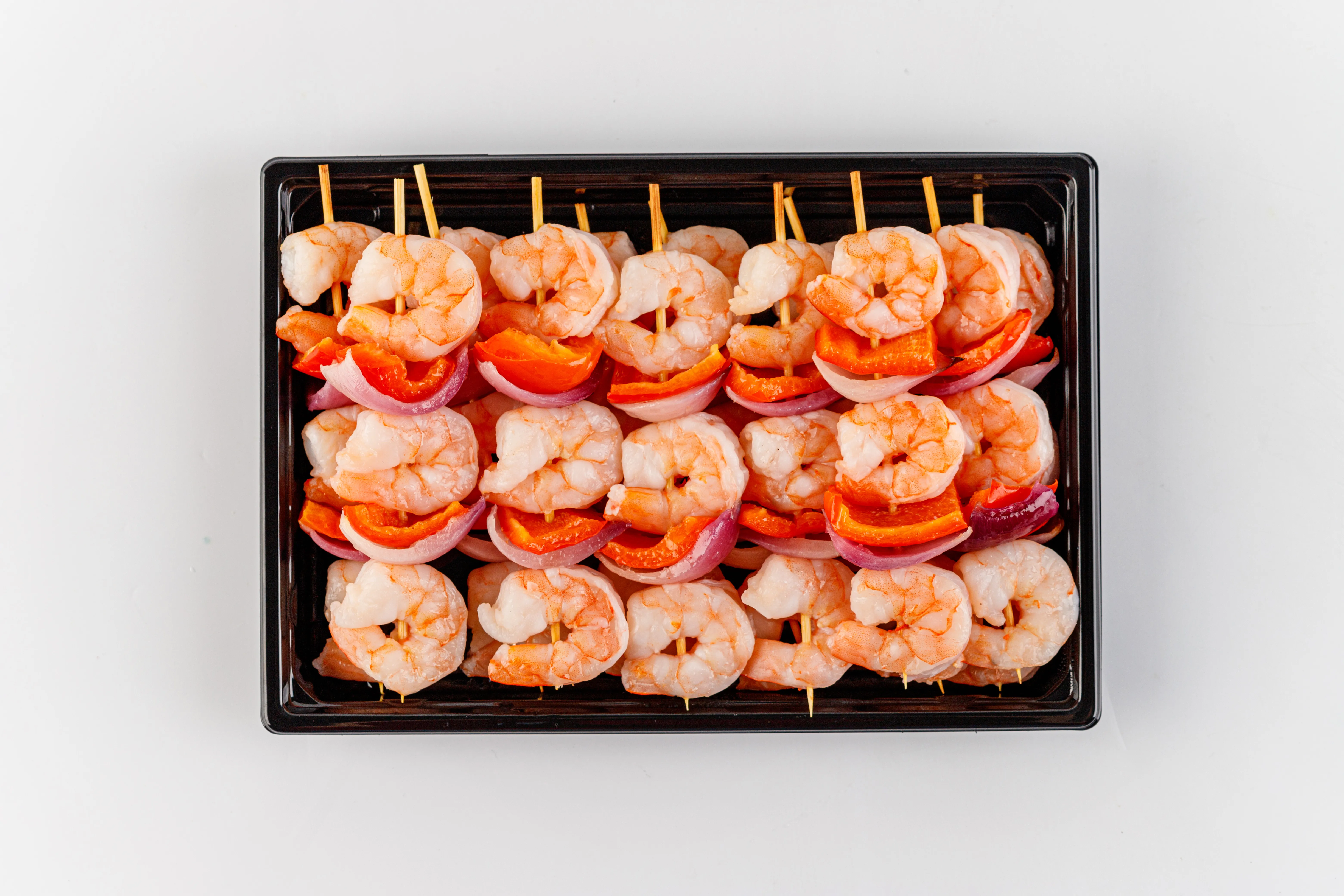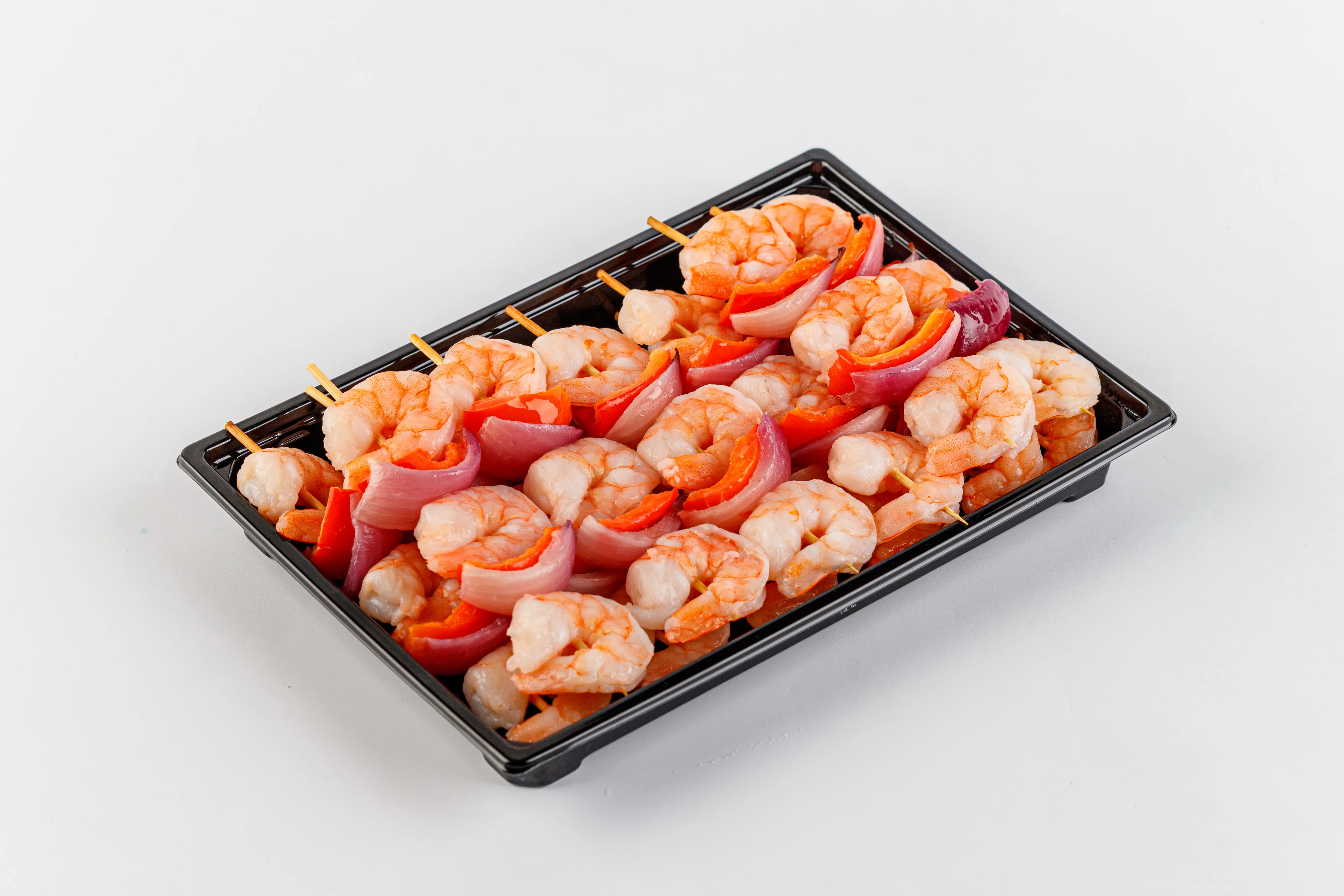 Шашлычки запечённые с тигровыми креветками, красным луком и сладким перцем, 12 шт