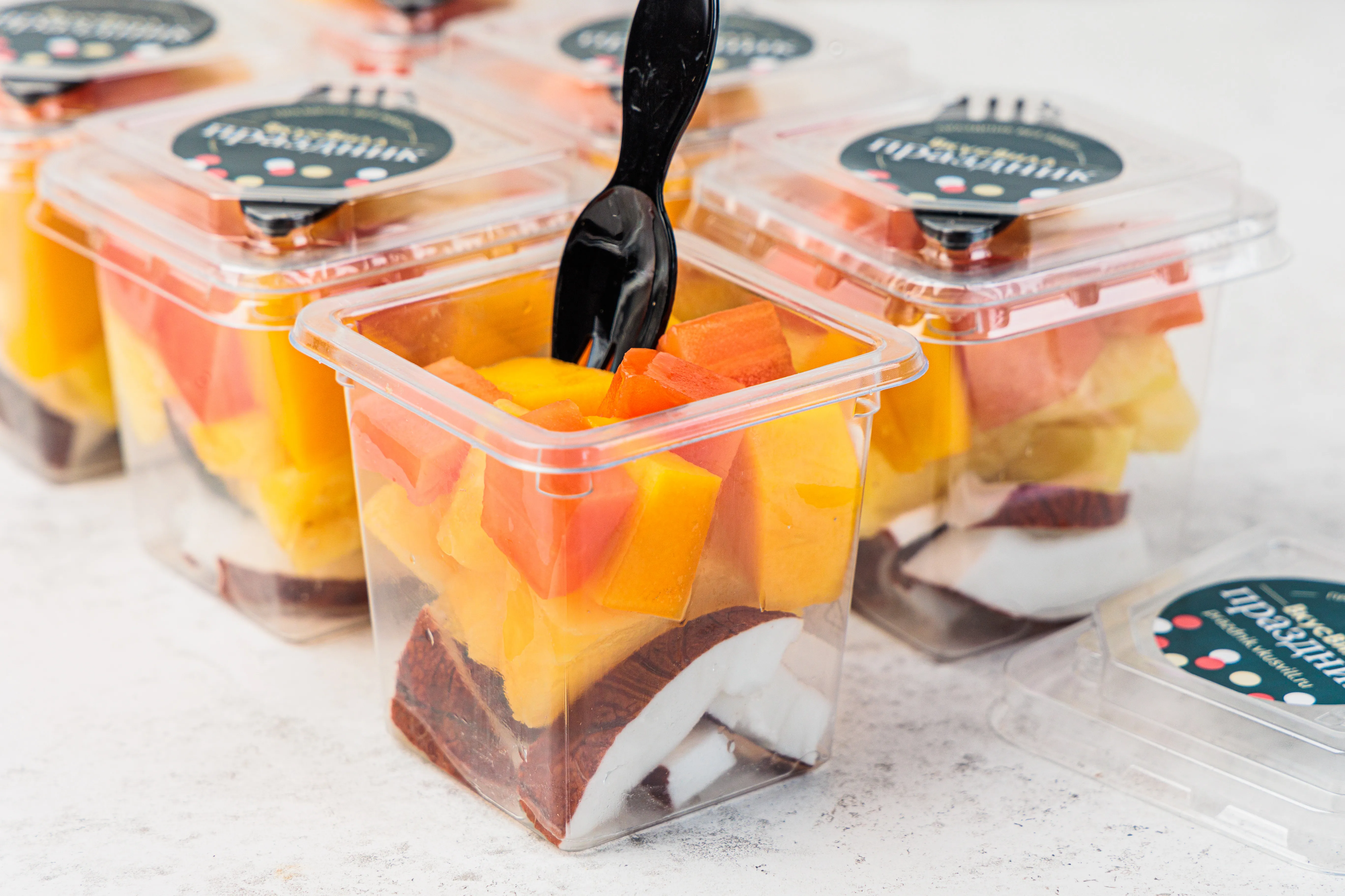 Погрузитесь в мир экзотики с набором тропических фруктов в стаканчиках! Яркие и свежие кусочки фруктов создают идеальную композицию для наслаждения вкусом настоящих тропиков. Удобная упаковка и сочные, сладкие плоды — это не только лакомство, но и украшение вашего стола. Фрукты в стаканчиках прекрасно подойдут для фуршетов, пикников и летних мероприятий. Сделайте свой праздник ярче и вкуснее с этим тропическим набором.