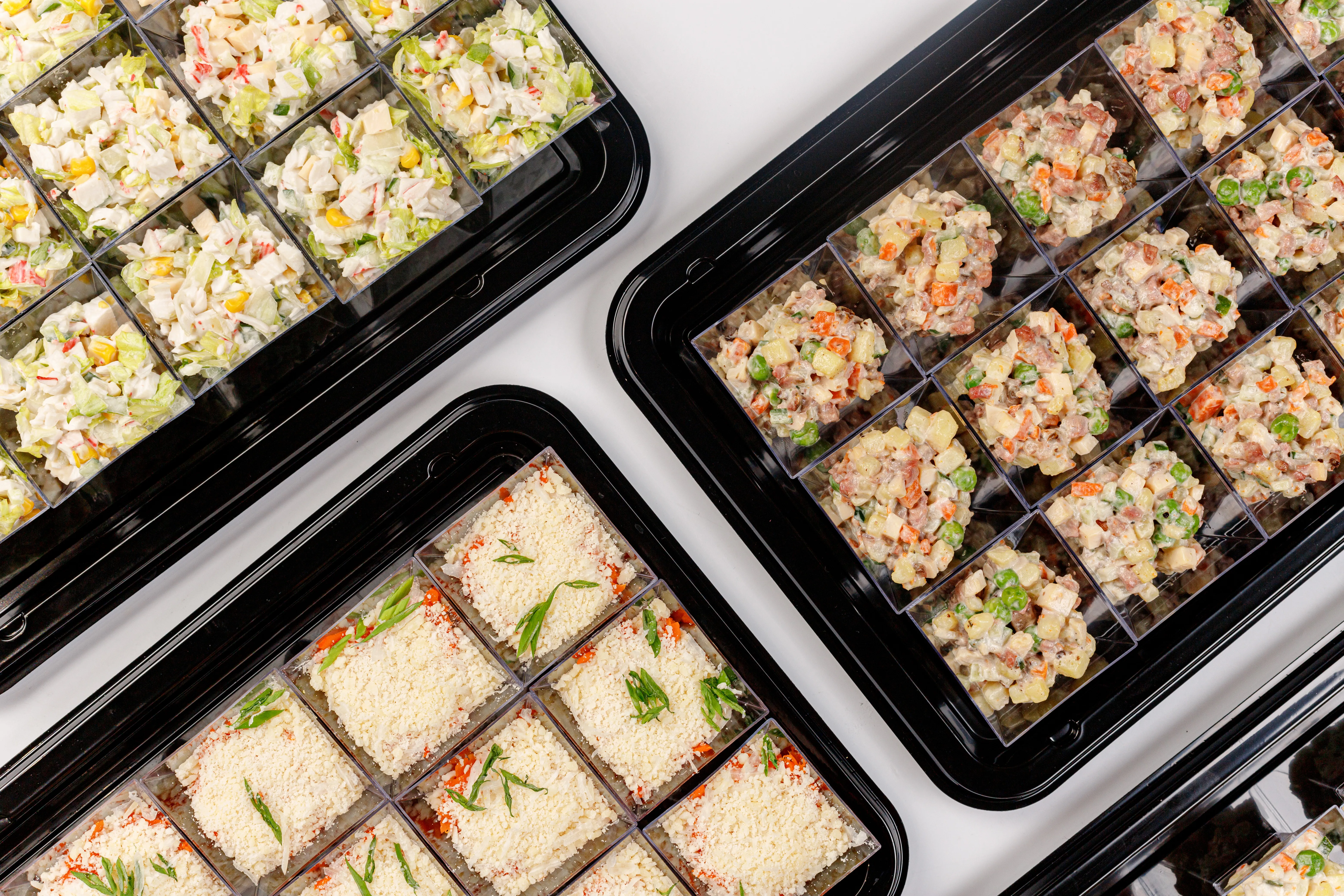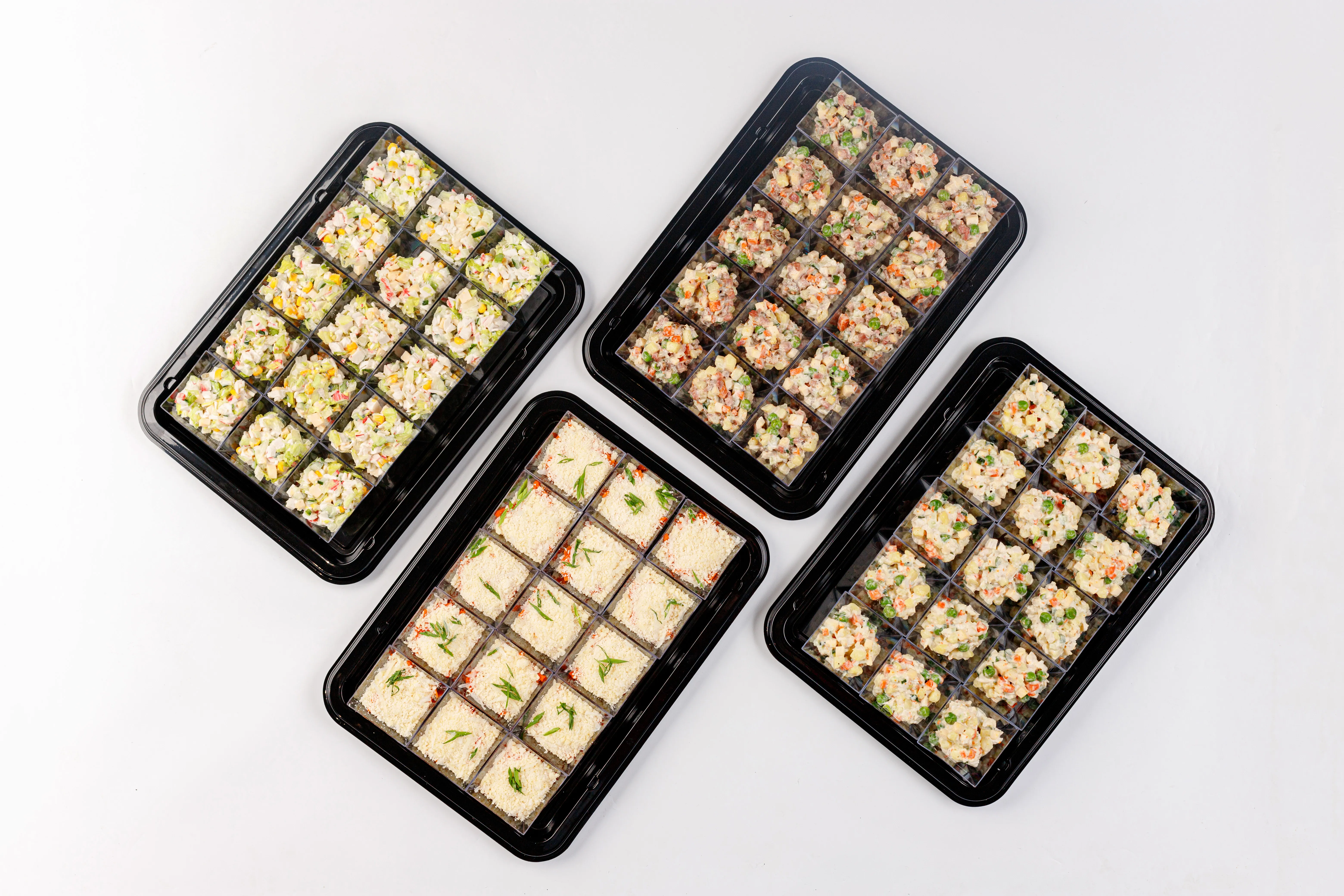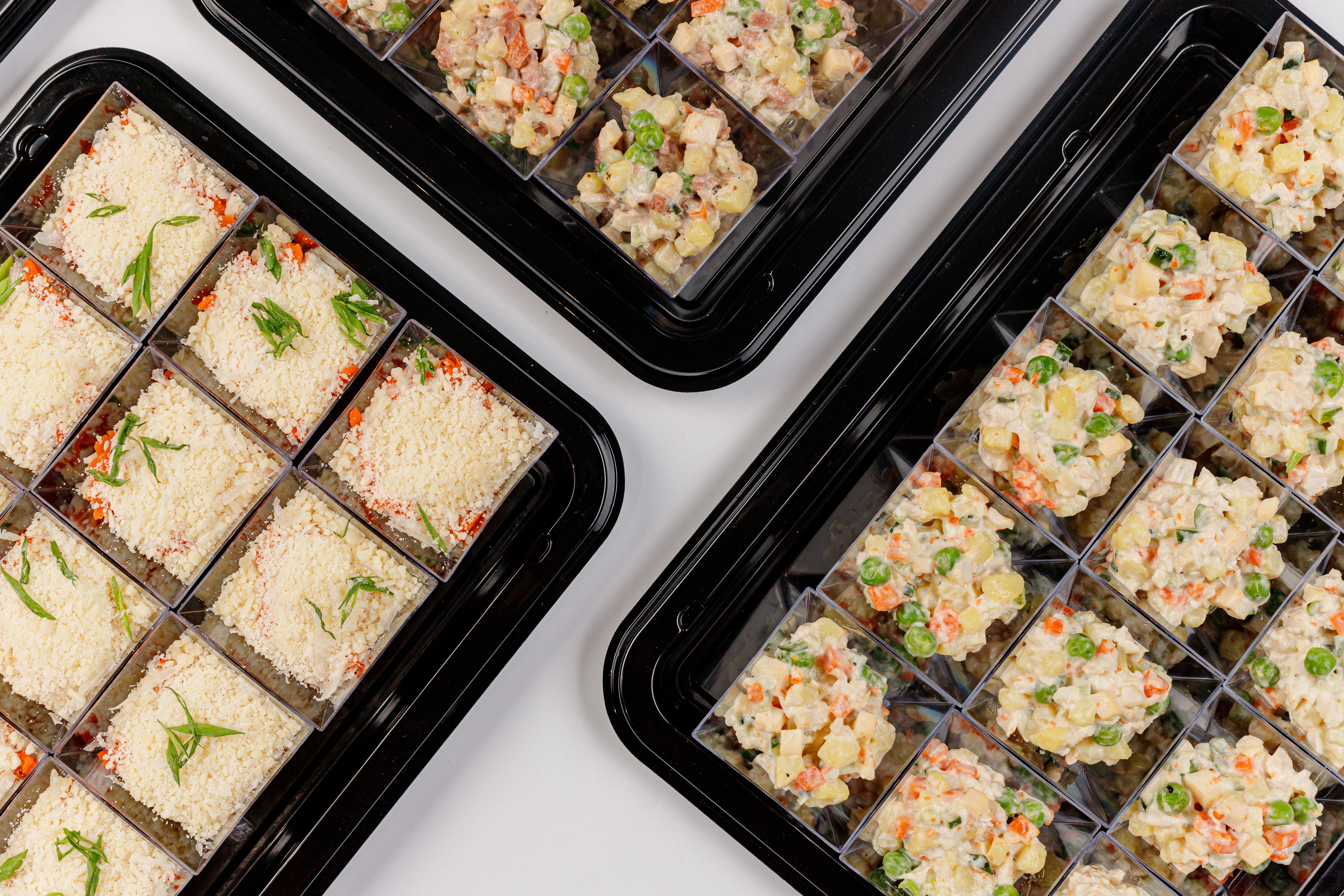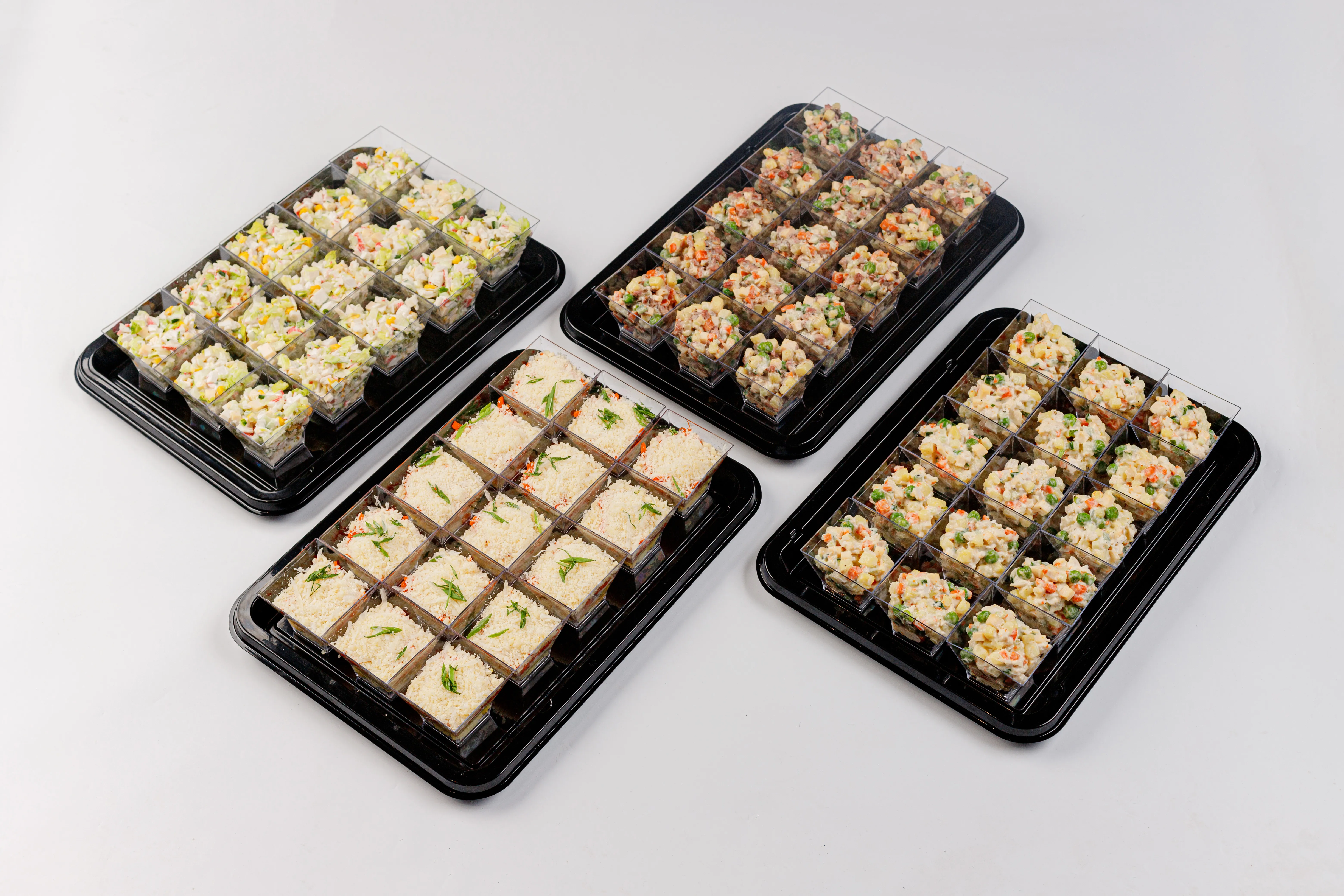 Сет популярных салатов (4 шт): Оливье с филе индейки, Крабовый, Мимоза и Оливье с ростбифом – разнообразие любимых вкусов в одном наборе. ✔ Оливье с филе индейки – лёгкая и нежная интерпретация классического рецепта. ✔ Крабовый – свежий и гармоничный, с приятными морскими нотками. ✔ Мимоза – воздушный, сбалансированный, с мягкой текстурой. ✔ Оливье с ростбифом – насыщенный вкус благодаря сочному мясу. Этот сет позволит накормить большую компанию. Идеально подходит для банкетов, фуршетов и других мероприятий.