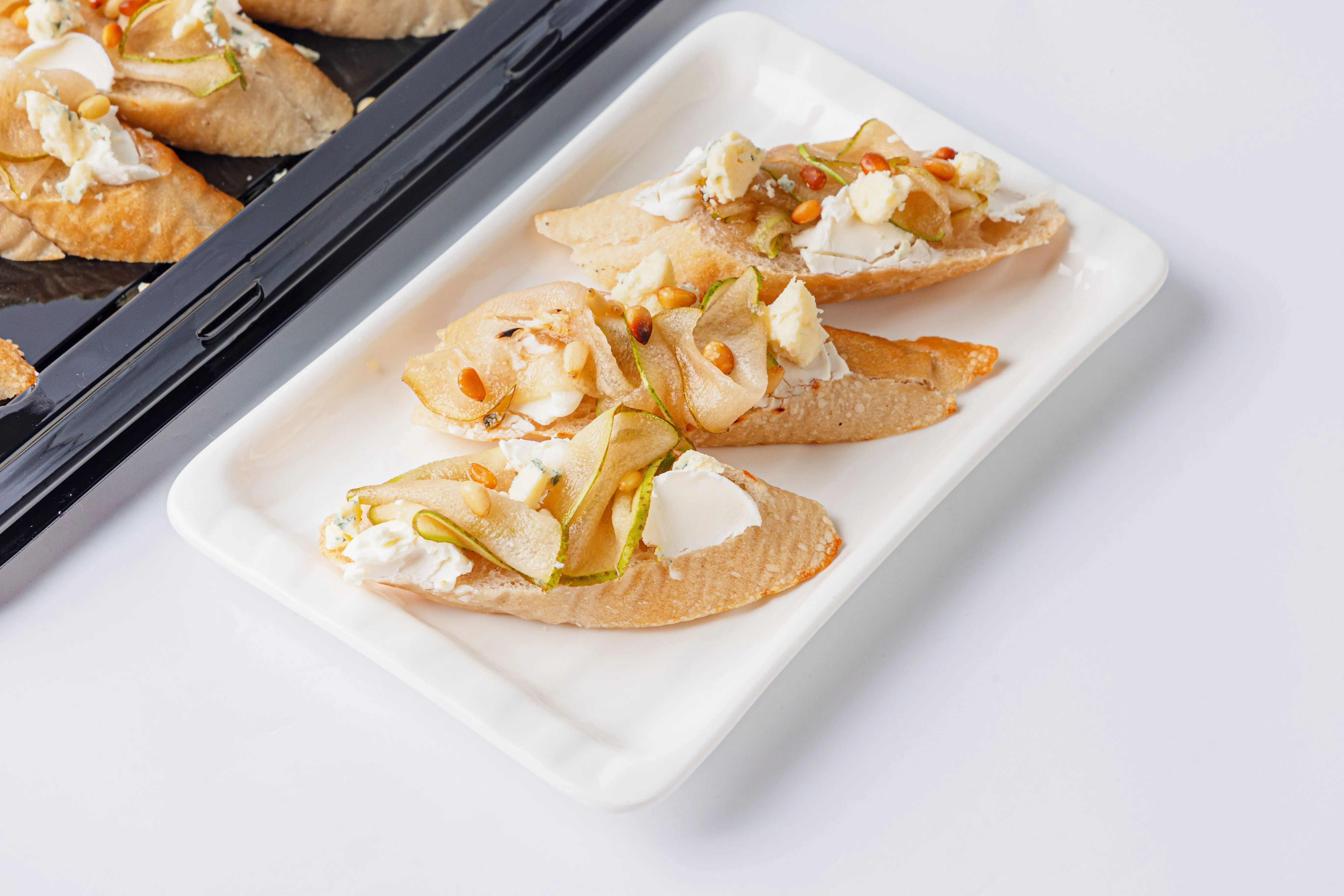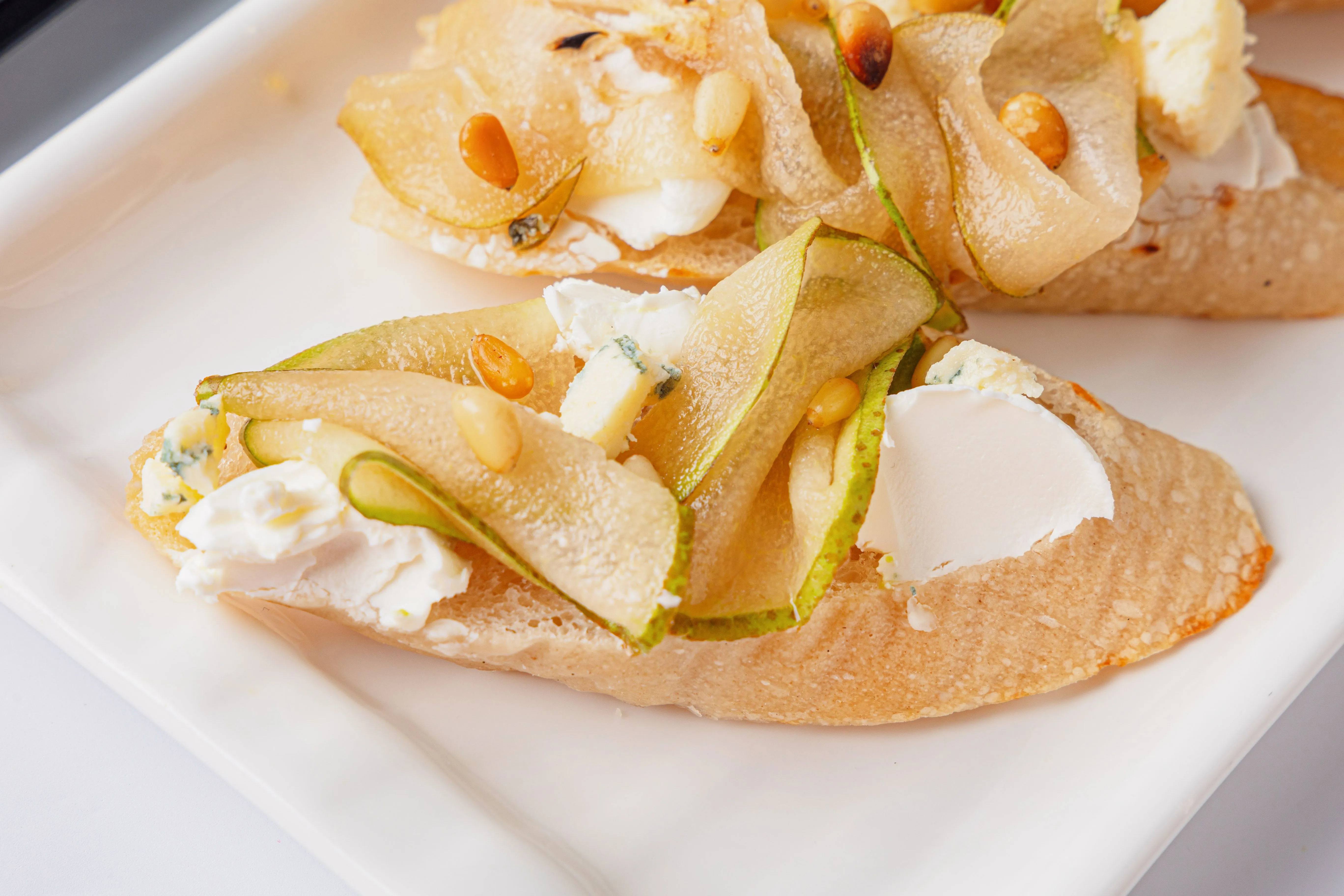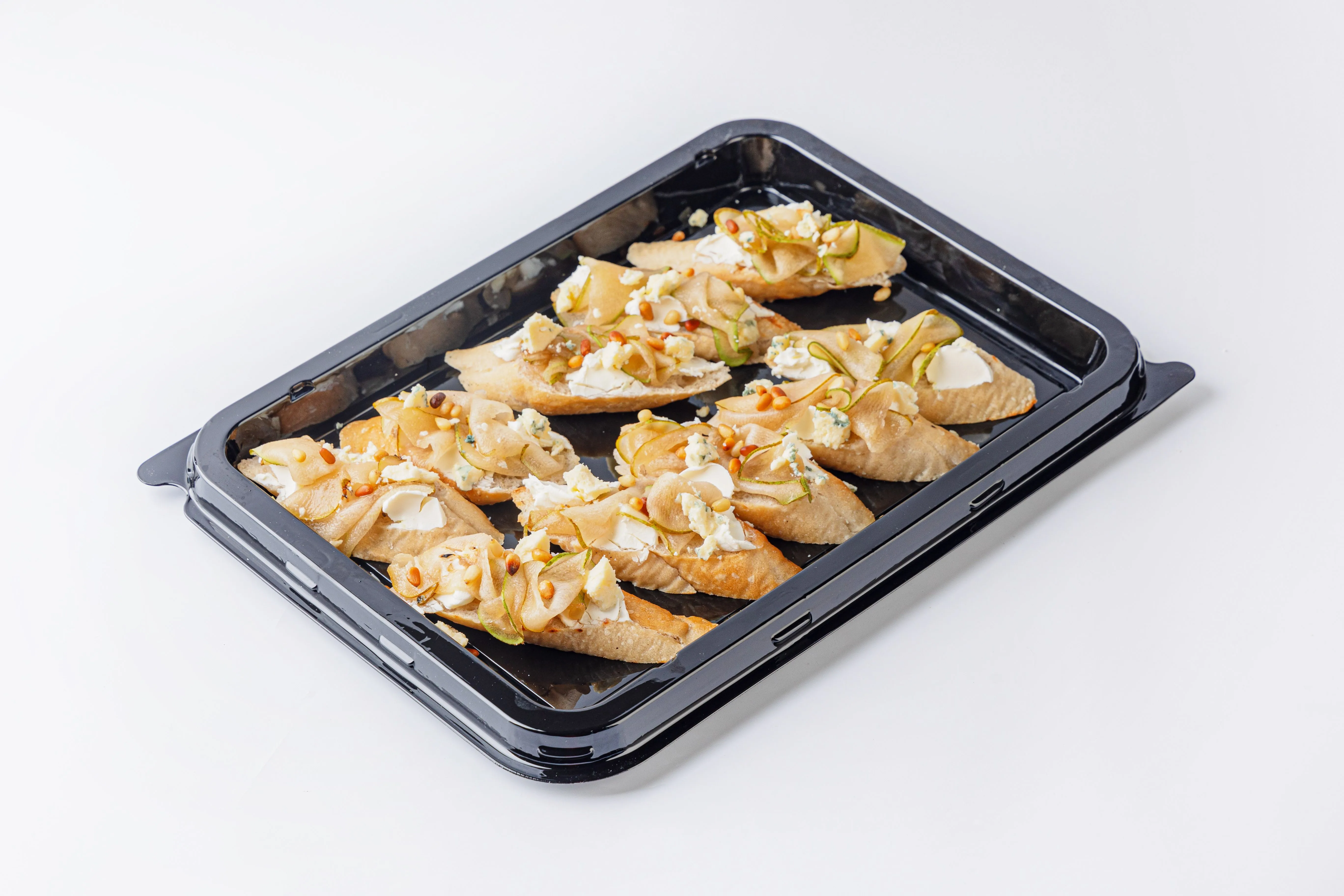 Брускетты с карамелизированной грушей, сыром горгонзола и кедровыми орешками – это изысканное сочетание сладости и пикантности. Хрустящая основа, покрытая нежной грушей, обжаренной до золотистого цвета, сливочным сыром горгонзола и хрустящими кедровыми орешками, создаёт гармоничный вкус. Идеальны для праздничного стола или особого случая. Купить брускетты можно вместе с другими вкусами для разнообразия или в дополнении к сытным блюдам.