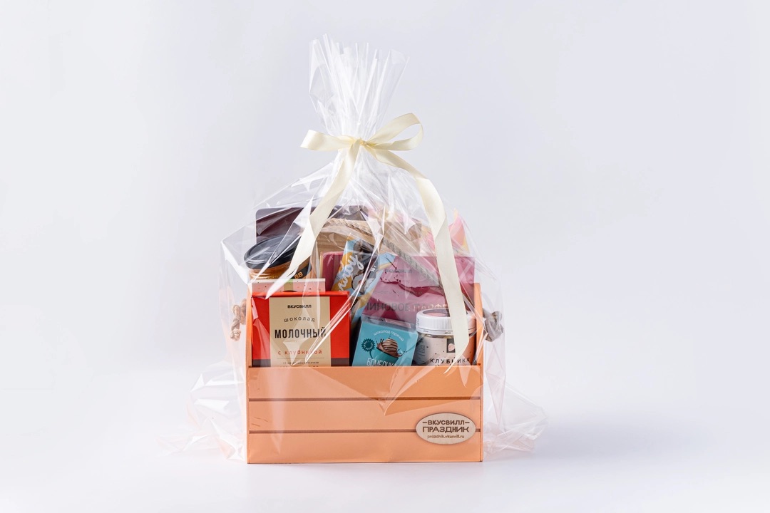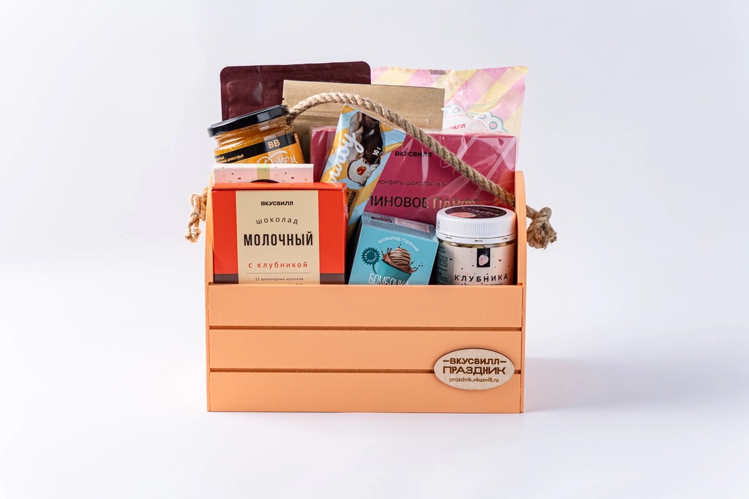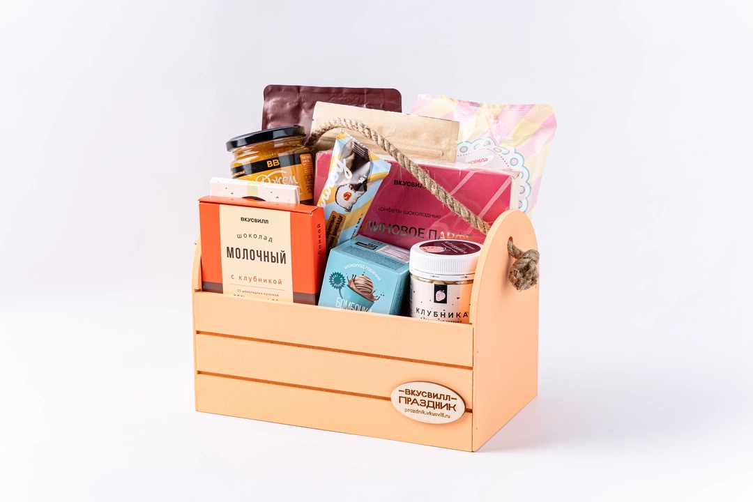 Оригинальный подарочный бокс, который угодит даже искушённым получательницам. Внутри — всё, что нужно для кофе- и чаепитий. Набор станет замечательным подарком для ценителей натуральных сладостей. А стильный деревянный бокс можно приспособить для хранения продуктов, милых мелочей и специй, чтобы он ежедневно напоминал о праздничном дне.