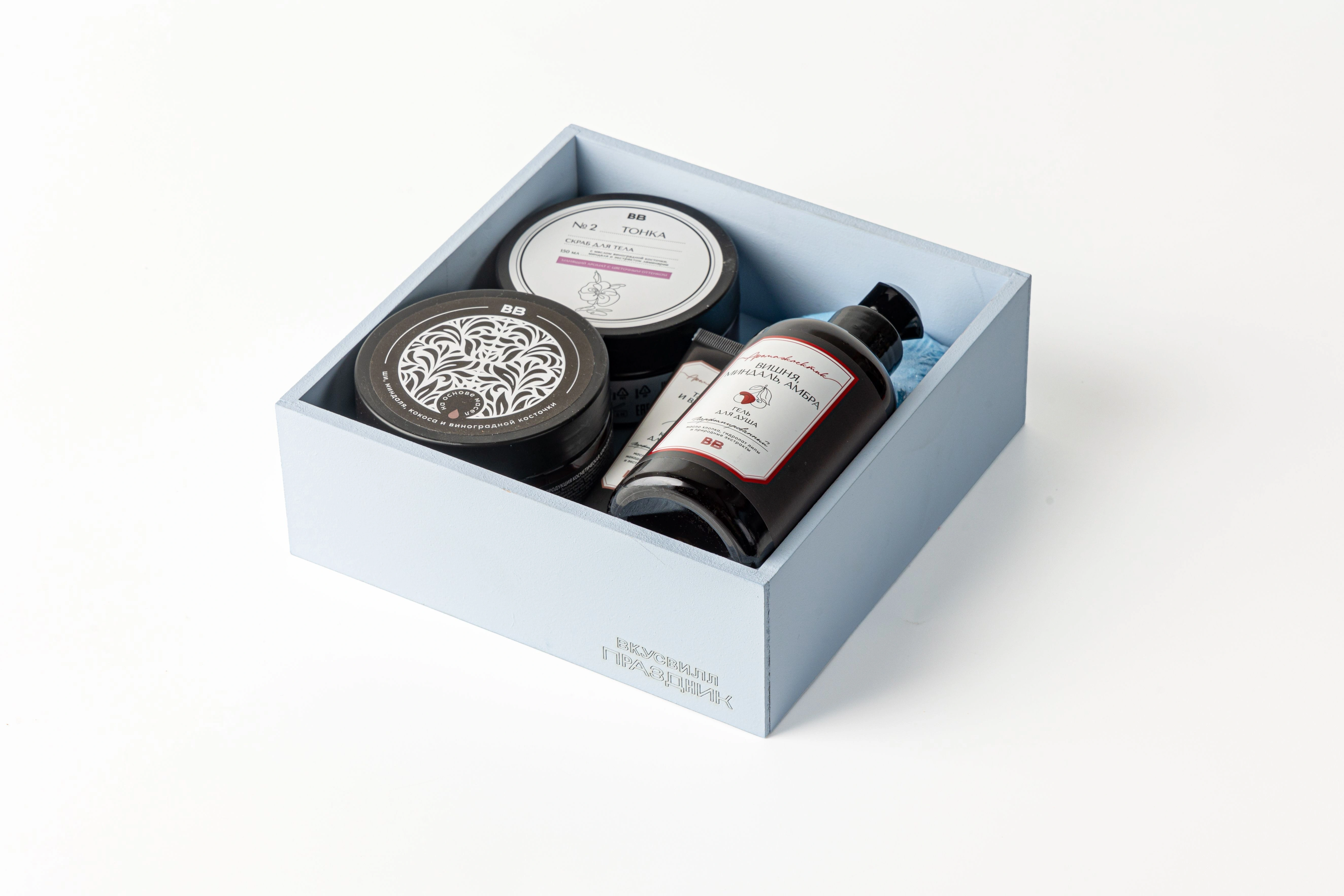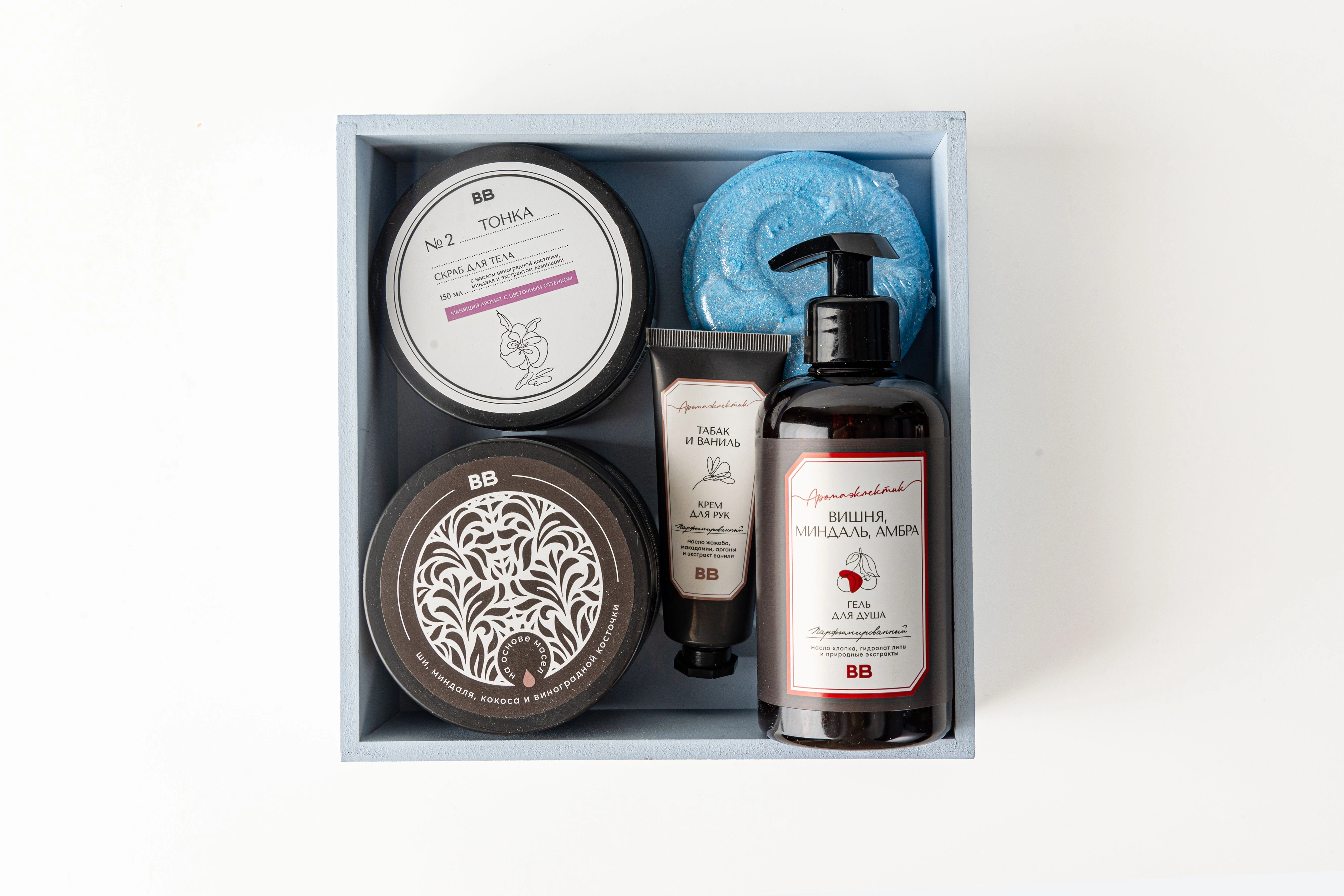 Небольшой набор для тех, кто любит баловать себя приятными мелочами. В коробочке собраны ароматные сюрпризы: от скраба с тёплыми нотами бобов «Тонка» до крема для рук с лёгкой пряностью перца. Гель для душа пахнет вишнёвым вареньем с миндальным акцентом, а крем с ароматом райского дерева оставляет на коже древесный шлейф. Две шипящие бомбочки превратят обычную ванну в спа-ритуал с лавандовой нежностью или морской свежестью. Формат мини позволяет попробовать сразу несколько вариантов ухода. В боксе найдётся всё, что нужно для вечера, посвящённого только себе.