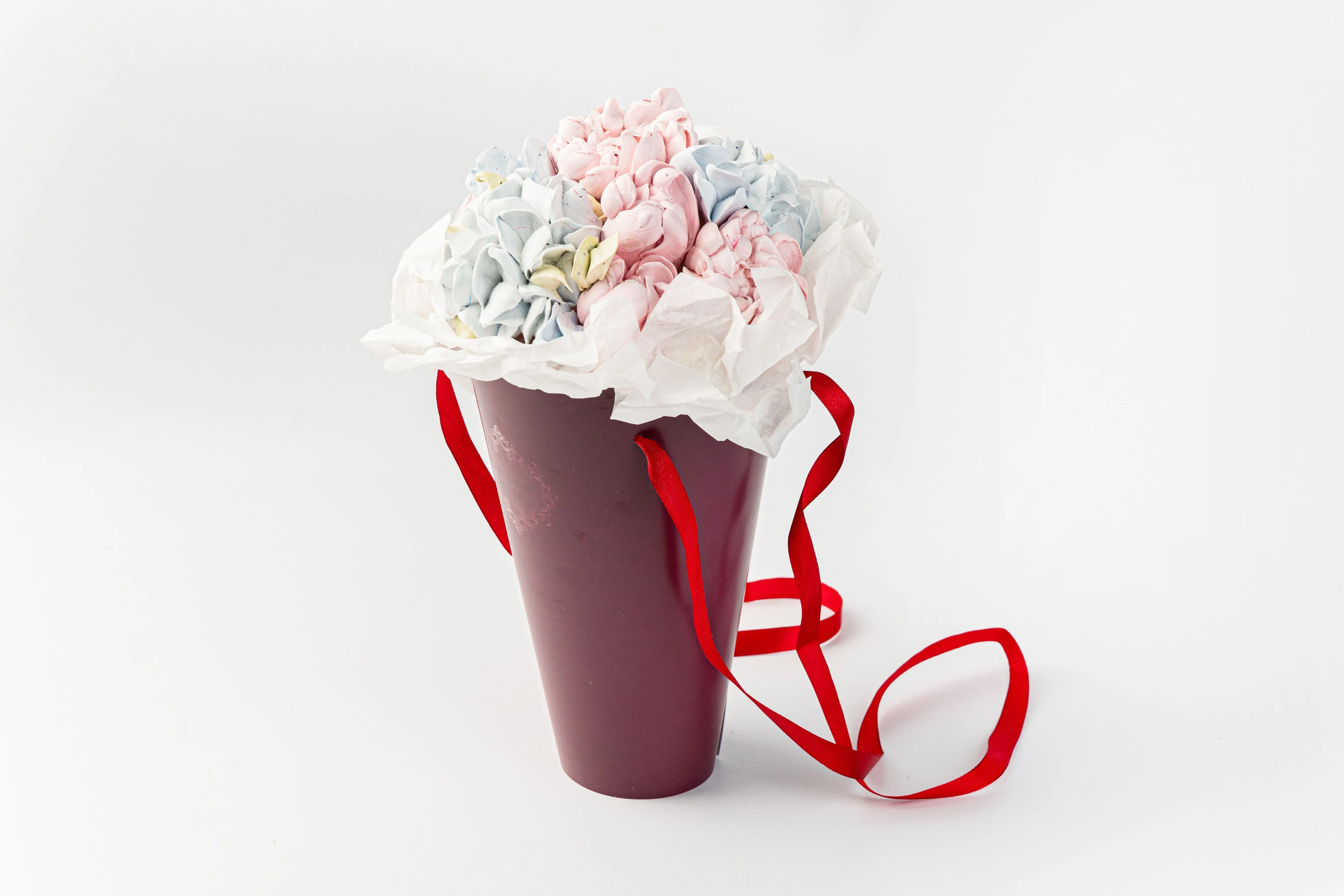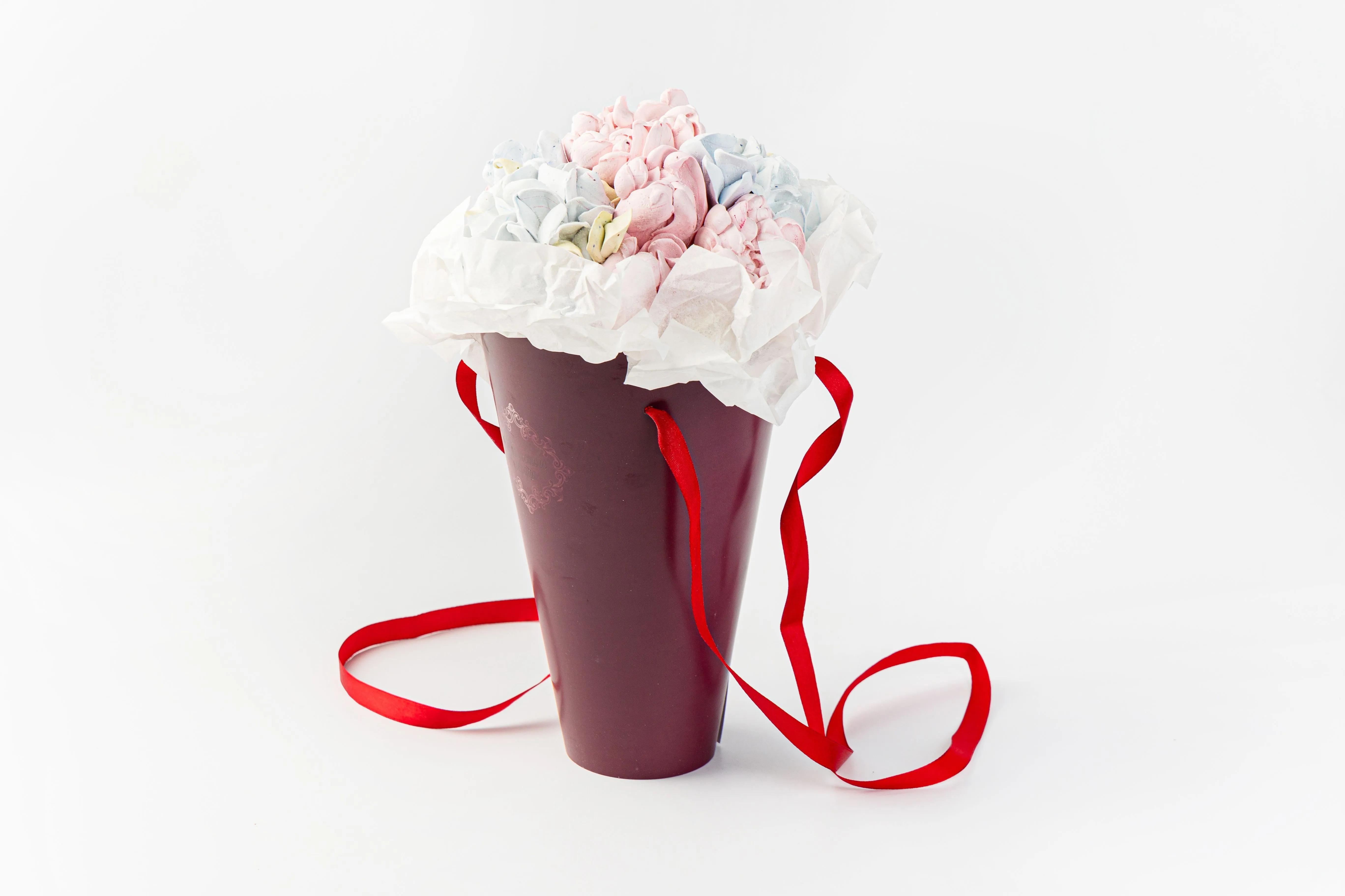Цветочная композиция из зефира. Зефир может быть не только вкусным и полезным лакомством, но еще и красивым. Зефирный букет уже давно стал незабываемым комплиментом или подарком. И надо видеть удивленные лица, когда говоришь, что вода не нужна, что этот букет из зефира. - Как так? Да цветы же как живые! А это точно зефир? - Да, да, зефир! - Вот это да, подумать только, я раньше такого и не видела!