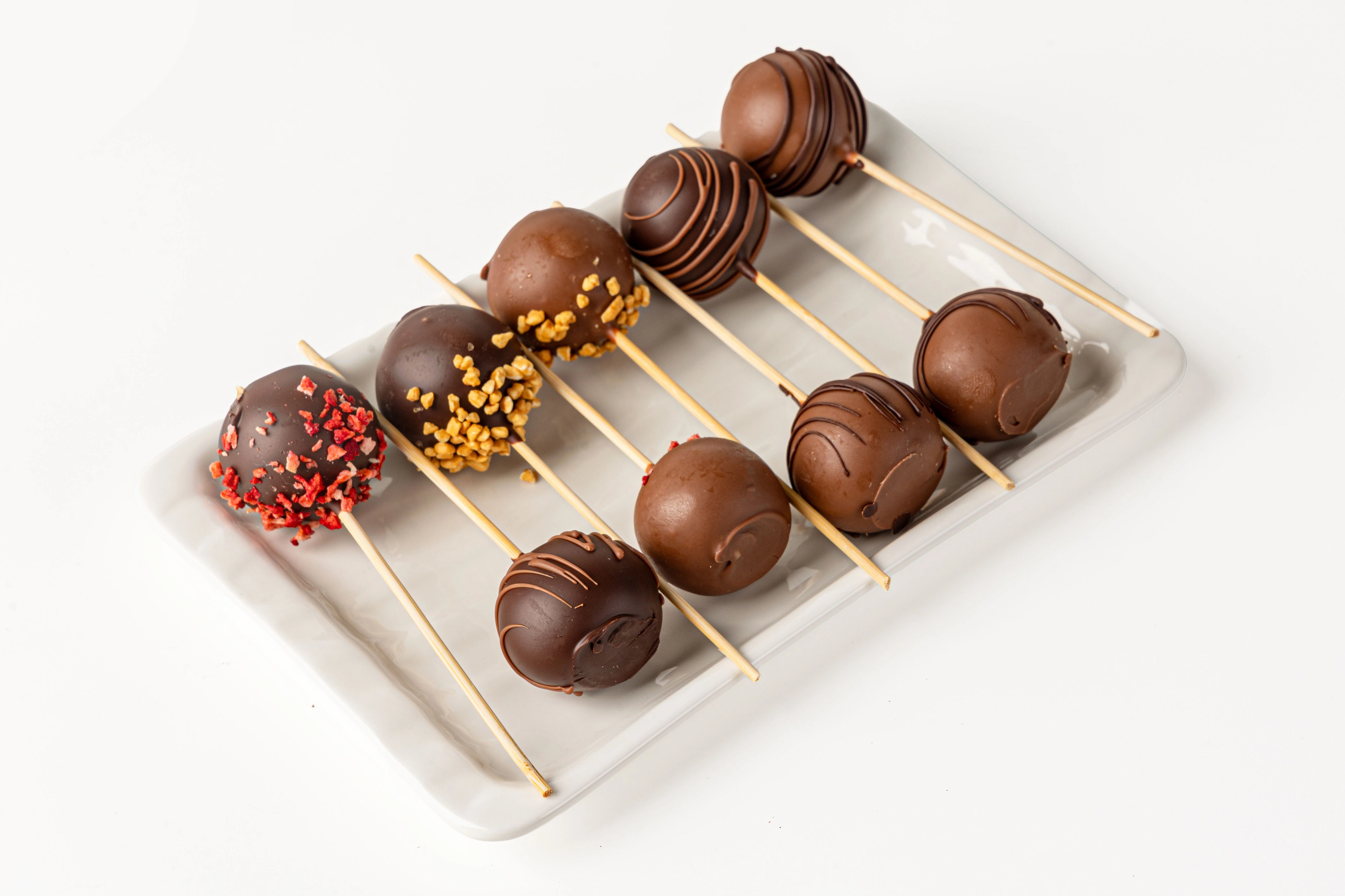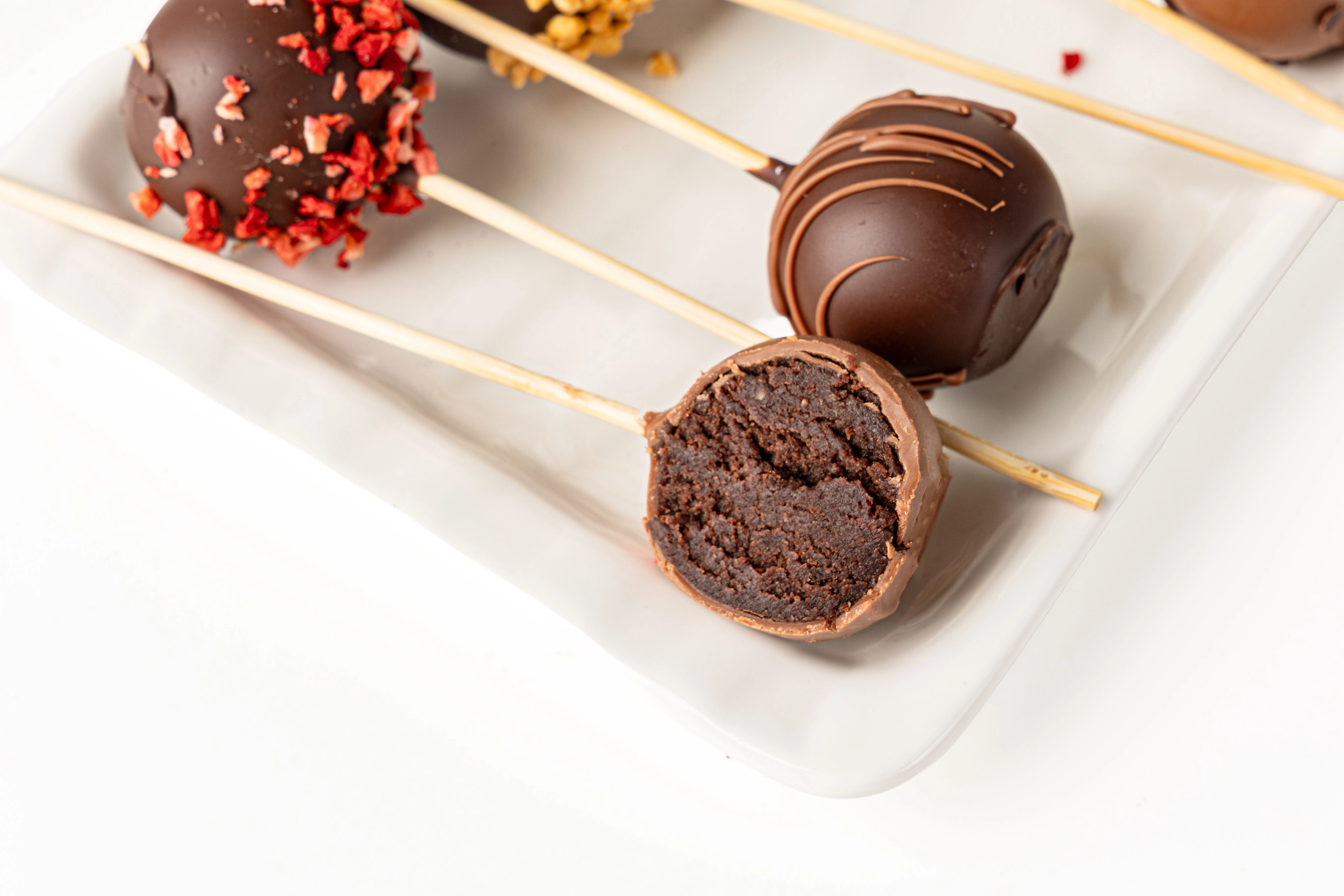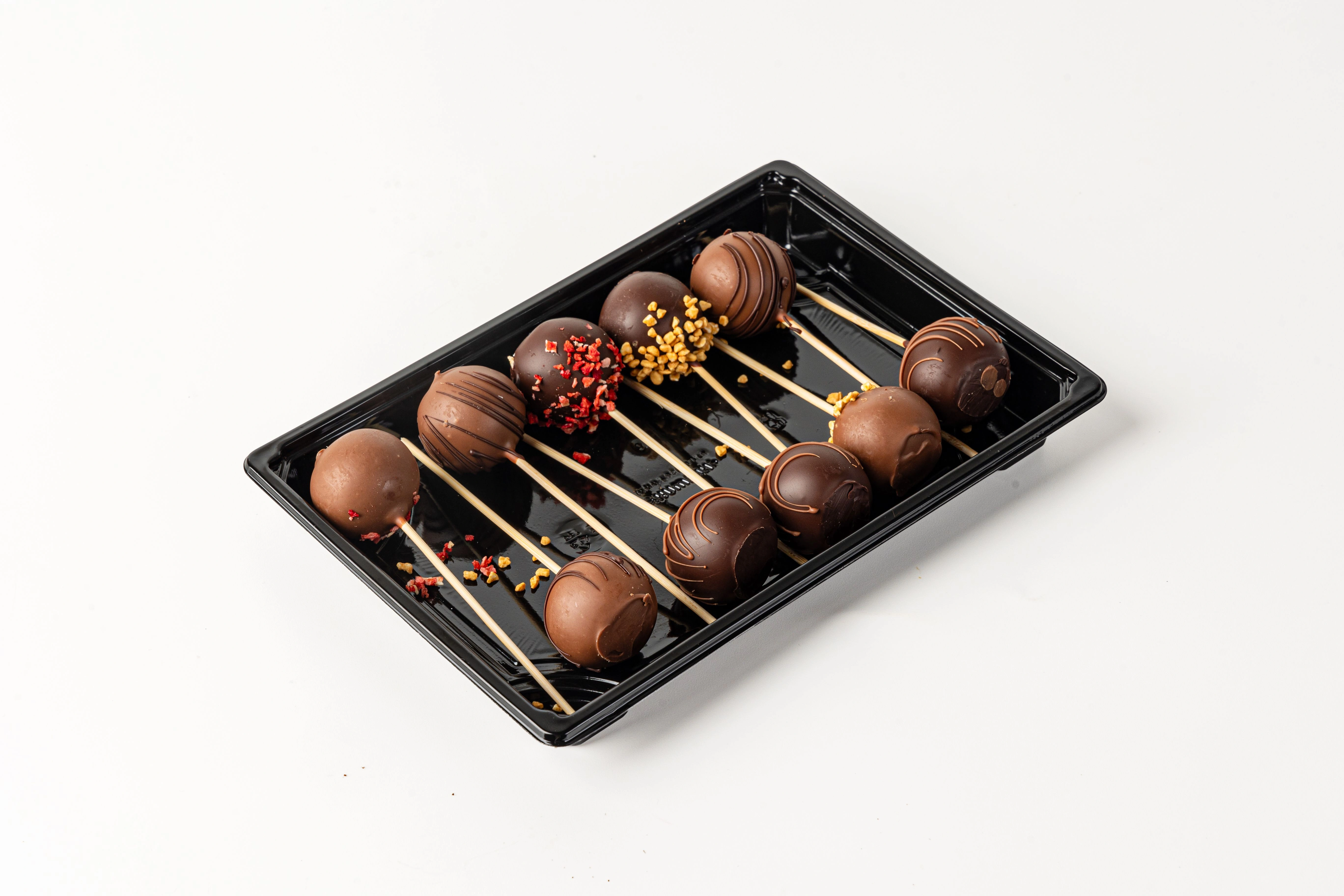 Знакомьтесь: кейк‑попс! Маленький, да удаленький: внутри — тающая нежность бисквита, снаружи — хрустящая шоколадная корочка. Держите его за палочку и отправляйтесь в сладкое путешествие!
