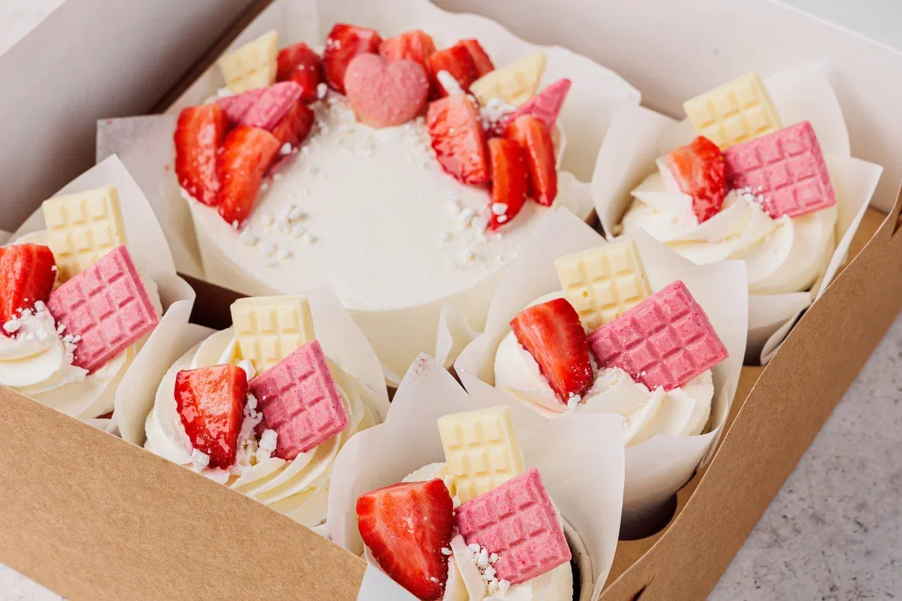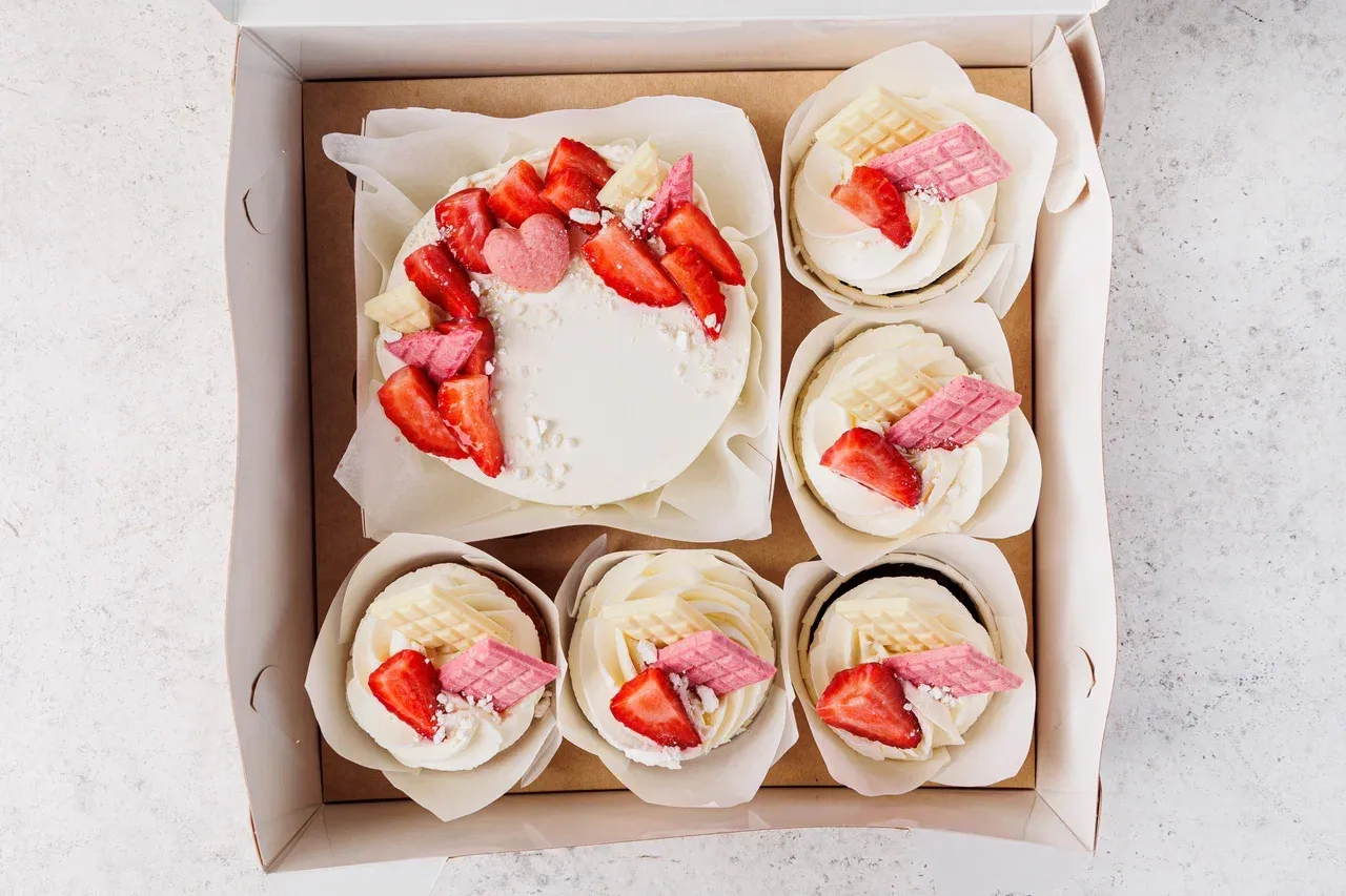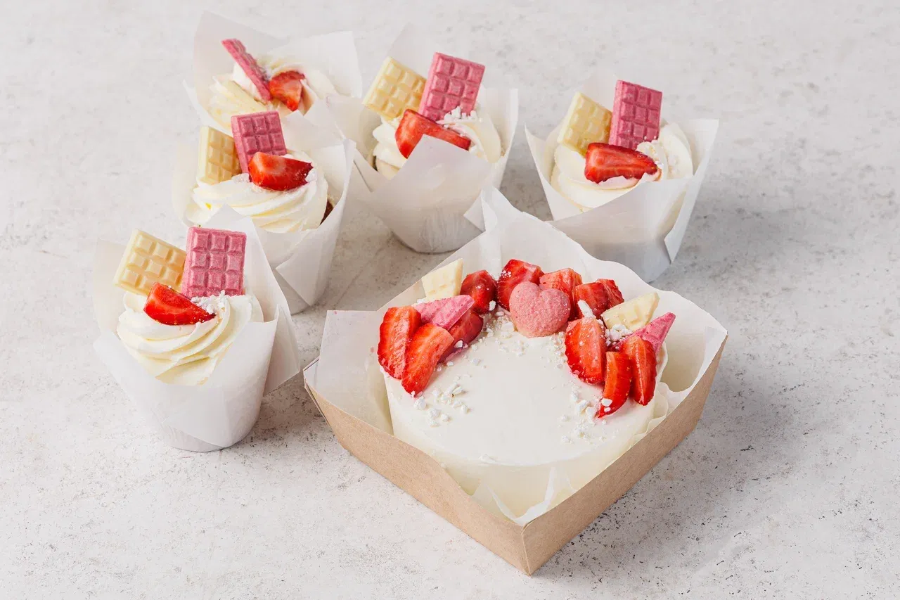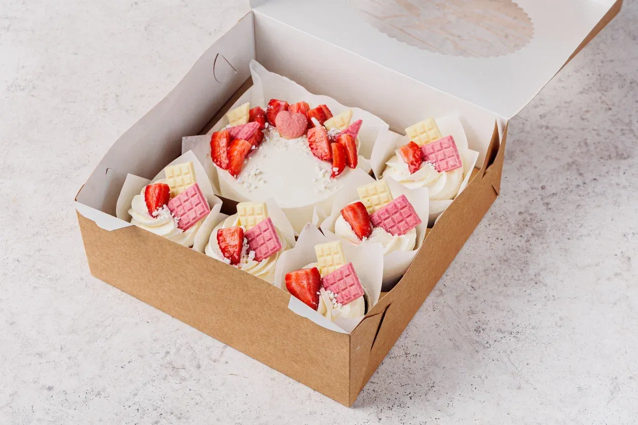 Набор Бенто-торт с капкейками «Клубничное настроение»
