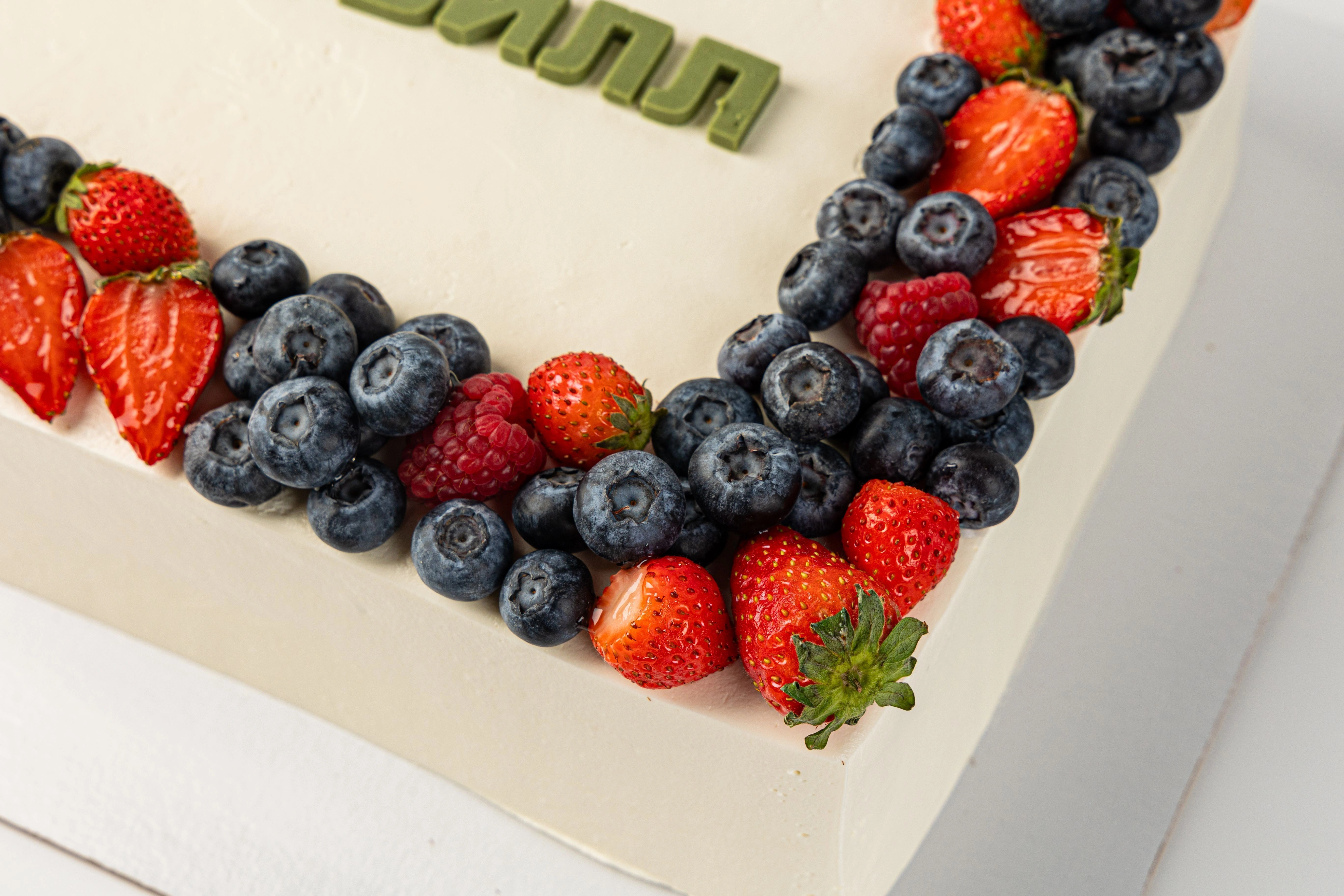 Покрытие: Сливки натуральные 33% (Сливки нормализованные); сыр творожный (творог (нормализованное пастеризованное молоко, закваска, молокосвертывающий фермент микробного происхождения); сахарный песок Ягоды свежие: клубника, голубика, малина