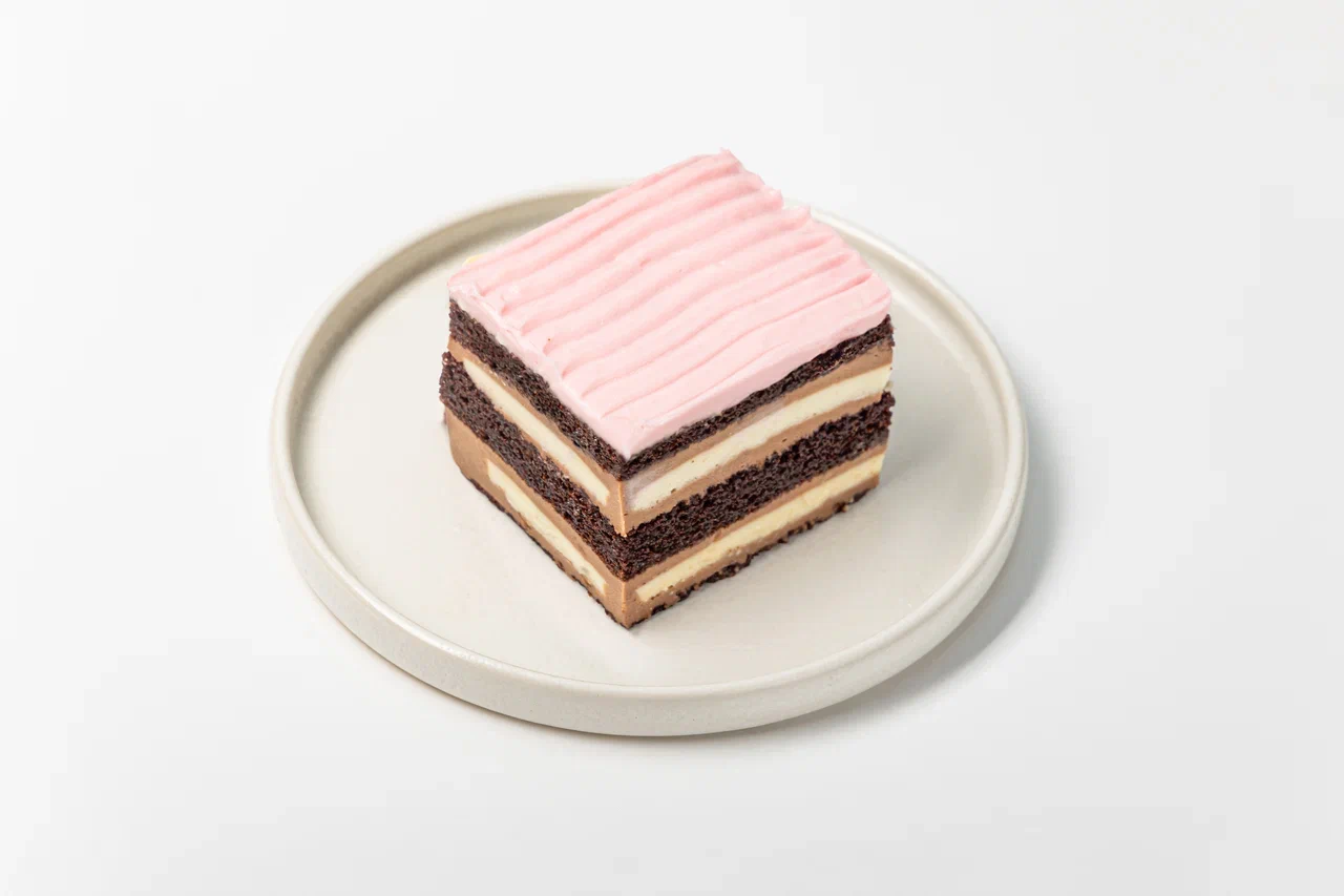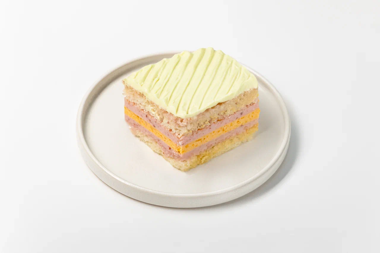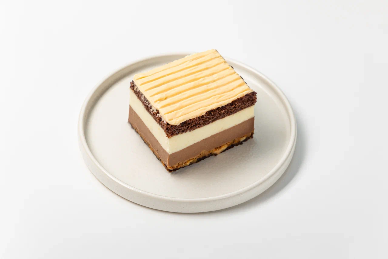 Начинка Молочный ломтик: Бисквит (мука в/с, сахар, сода пищевая (гидрокарбонат натрия), какао порошок, меланж яичный, масло растительное, молоко, вода), пропитка (молоко, сахар, какао), мусс шоколадный (сахар, молочный шоколад (какао-масло, тертое какао, сухое цельное молоко, тростниковый сахар, соевый лецитин,натуральный ароматизатор ваниль ) желатин пищевой, желток яичный, молоко 2,5%, сливки 33% (сливки нормализованные), мусс (желатин пищевой, сахар, желток яичный, молоко 2,5% сливки 33% (сливки нормализованные))