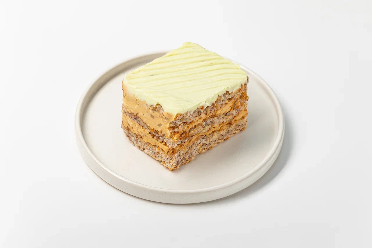 Начинка Морковный торт: бисквит морковный (мука в/с, масло растительное, сахар, морковь, сода пищевая (гидрокарбонат натрия),уксус 9% , имбирь, мускатный орех, корица молотая, меланж яичный), крем (молоко 3,2% , желток яичный, натуральный ароматизатор ваниль, сахар, кукурузный крахмал, масло сливочное 82,5%м.д.ж. (пастеризованные сливки из коровьего молока)), соленая карамель (сахар, соль, масло сливочное 82,5% м.д.ж. (пастеризованные сливки из коровьего молока), ядра грецкого ореха, сливки 33% м.д.ж.(сливки нормализованные)), сок апельсина, натуральная тертая морковь, пюре яблока, вода.