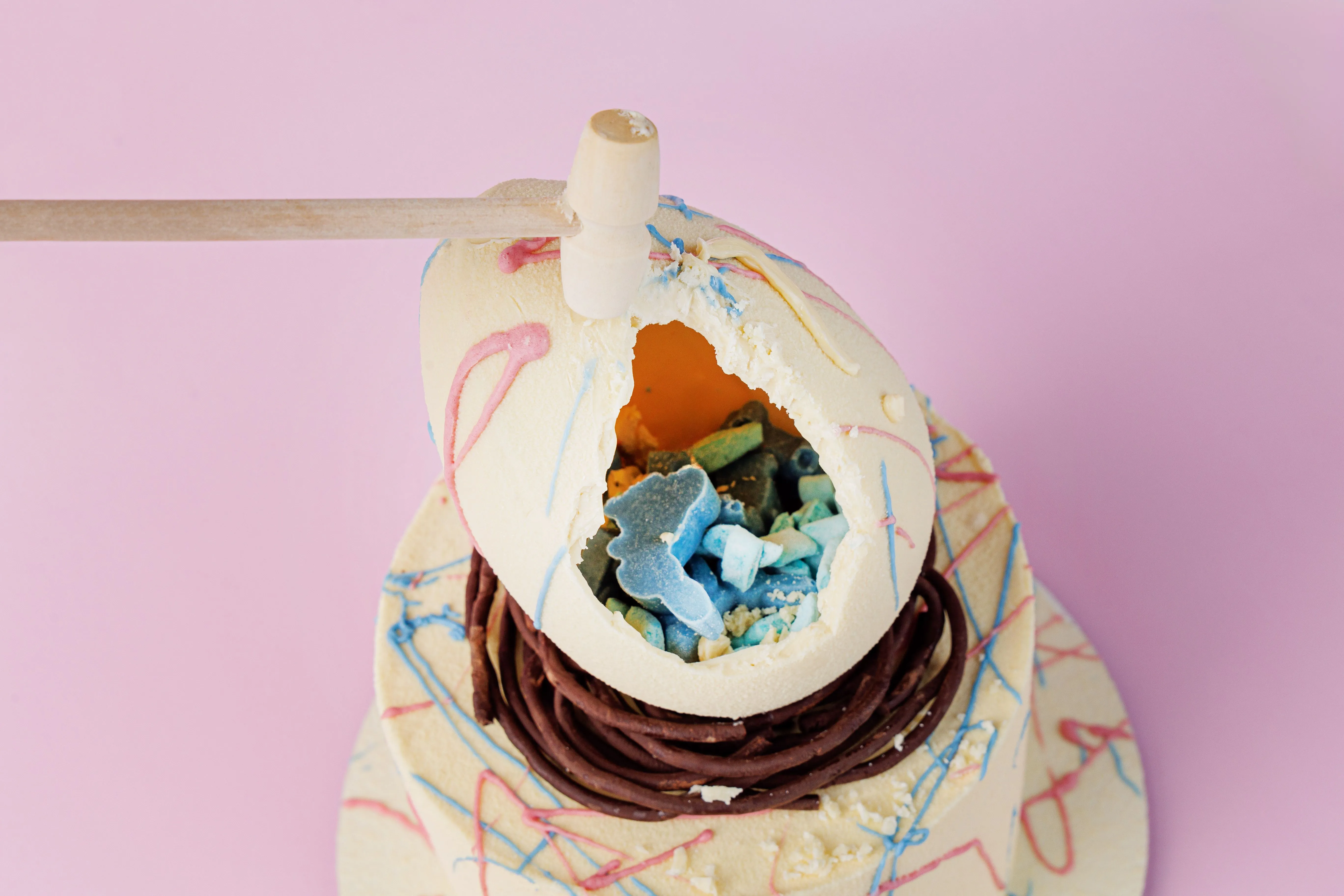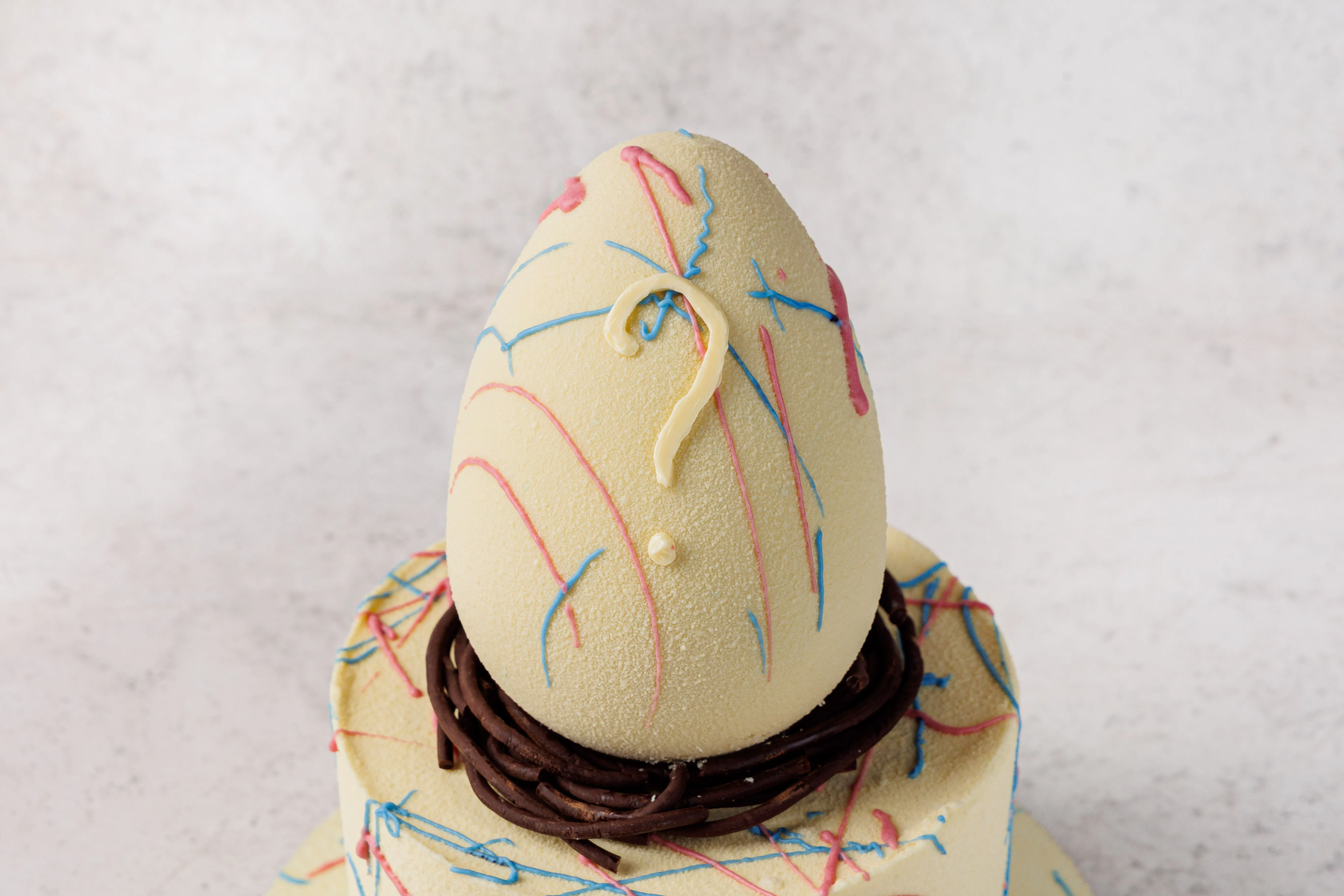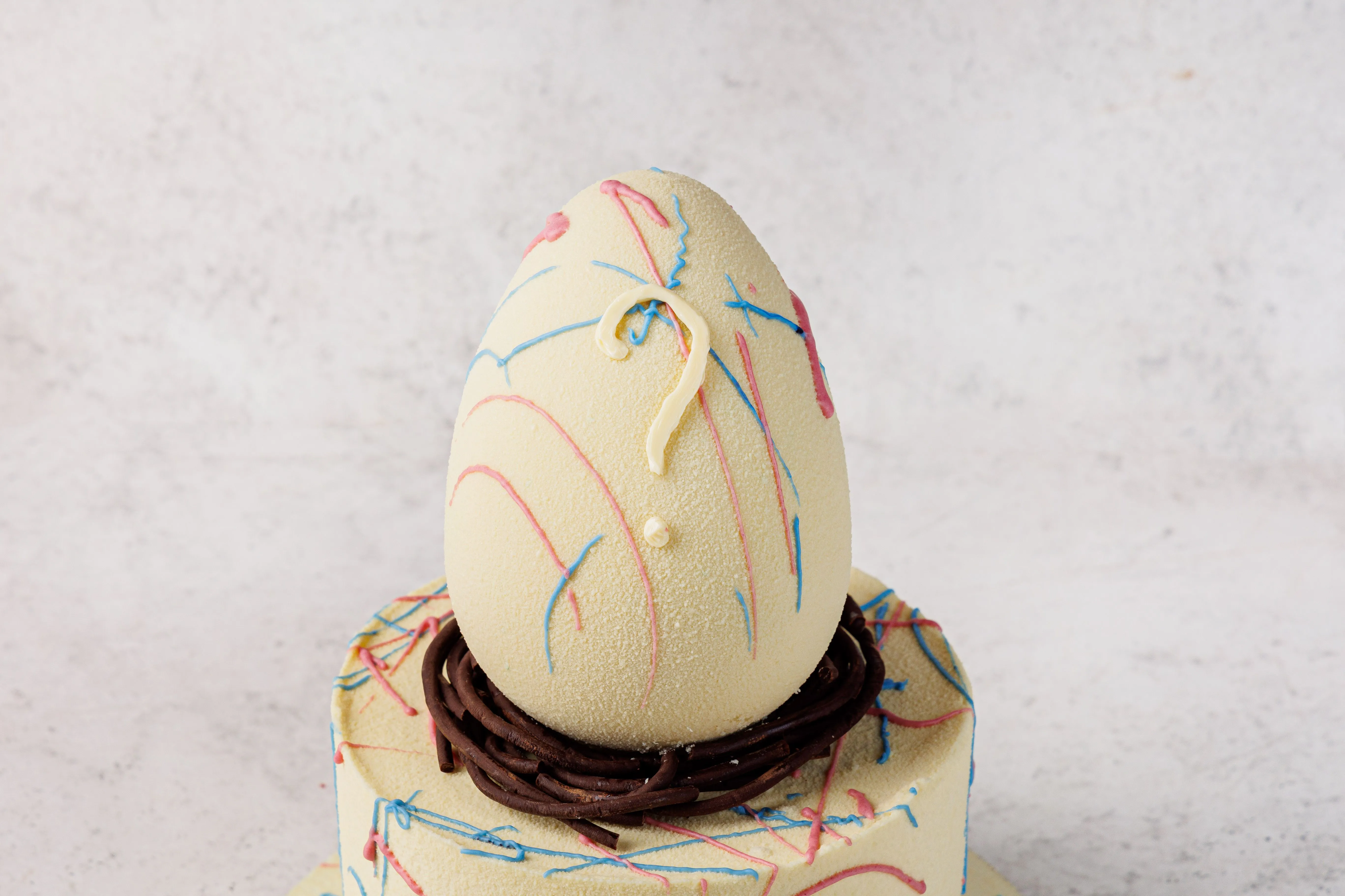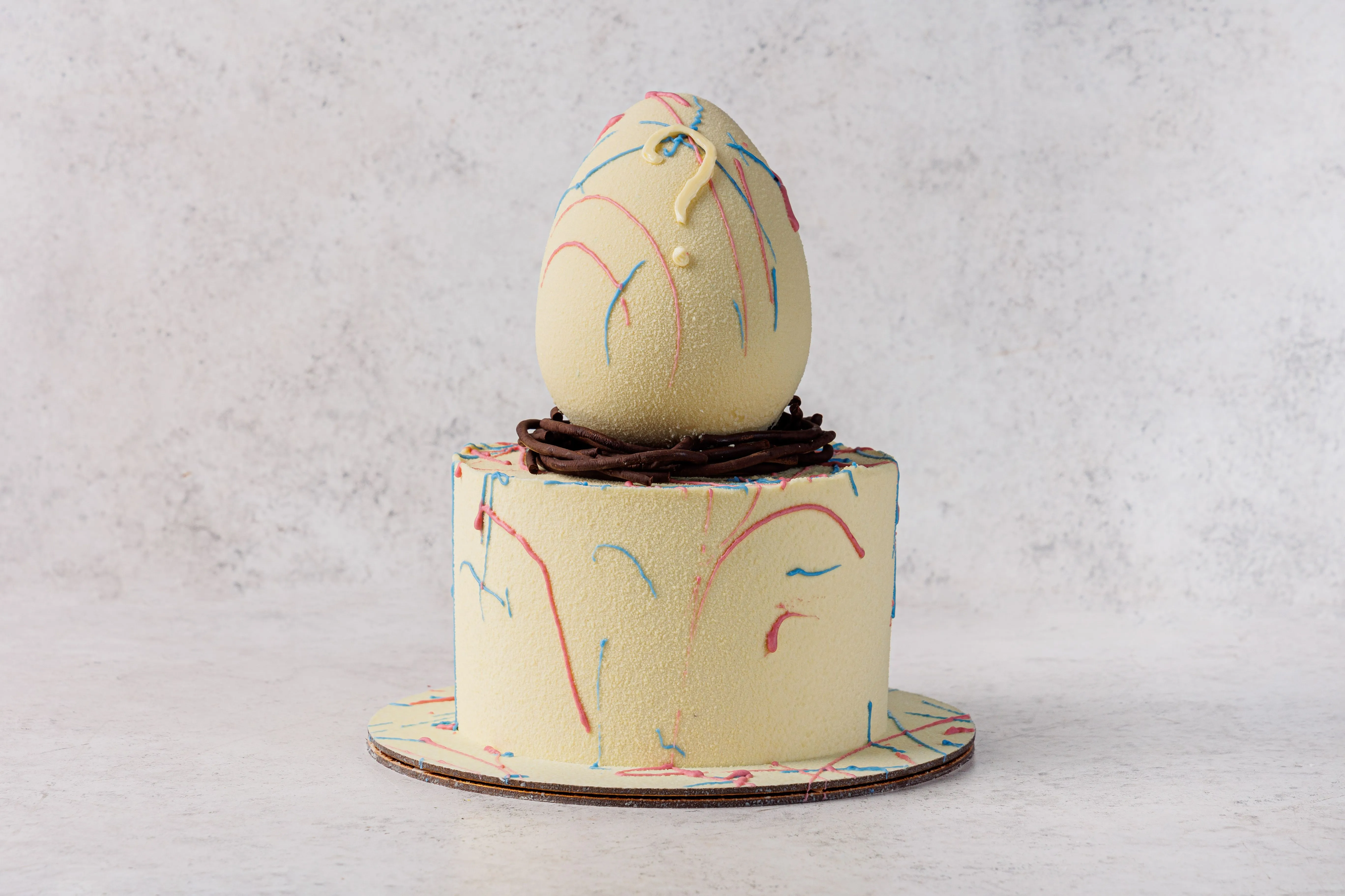 Декор: шоколадные узоры, яицо; шоколадная масса белая (сахар, какао масло, молоко сухое обезжиренное, молоко сухое цельное, эмульгатор: соевый лецитин, ваниль, экстракт спирулины, кармины. Шоколад молочный (какао-масло, тертое какао, сухое цельное молоко, тростниковый сахар, эмульгатор - подсолнечный лецитин, натуральный ароматизатор ваниль. Наполнение: желатин пищевой, яичный белок, сахарная пудра, глюкозный сироп, экстракт спирулины, кармины. пряности: корица молотая; имбирь молотый; гвоздика молотая, краситель: экстракт генипы, сафлоры