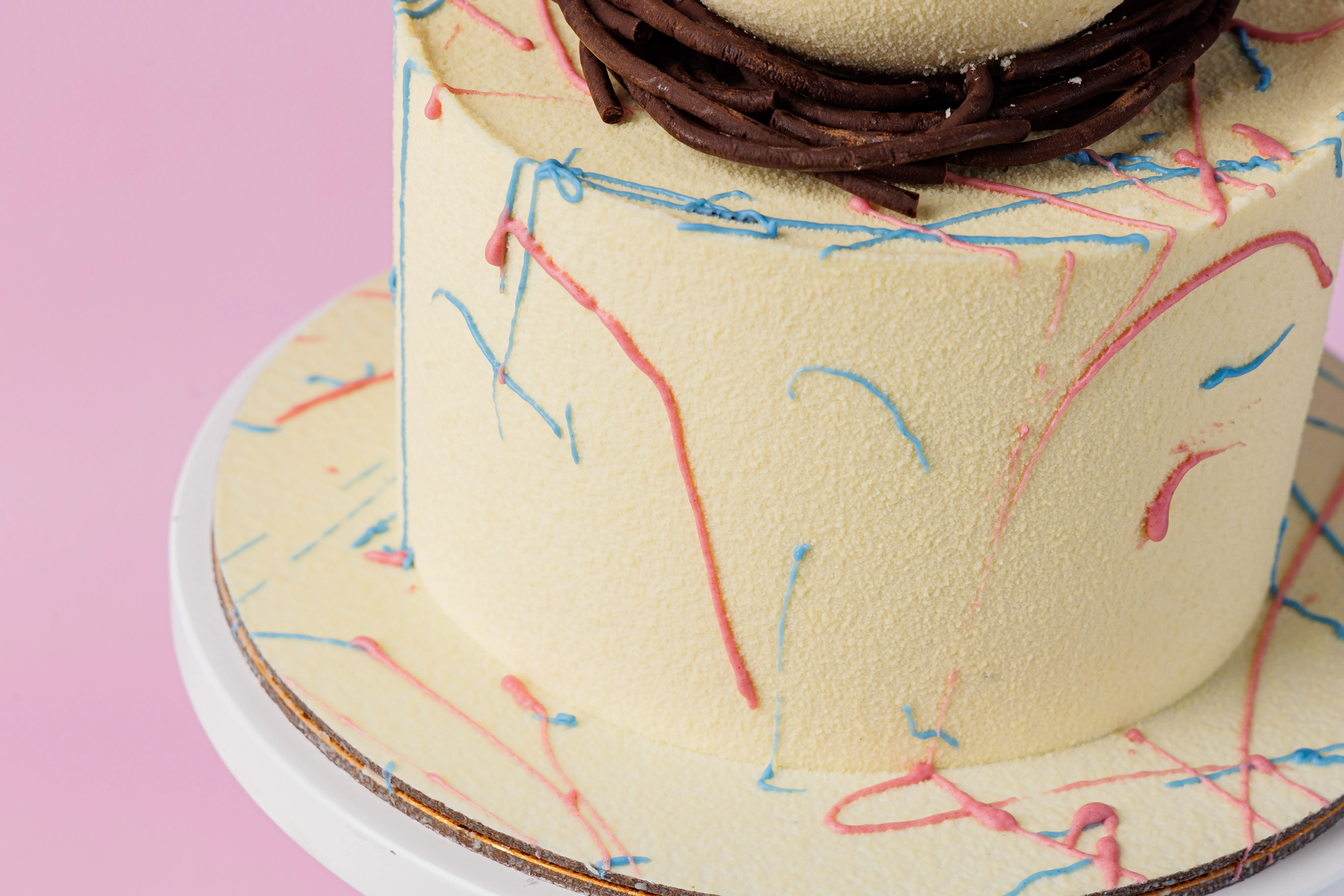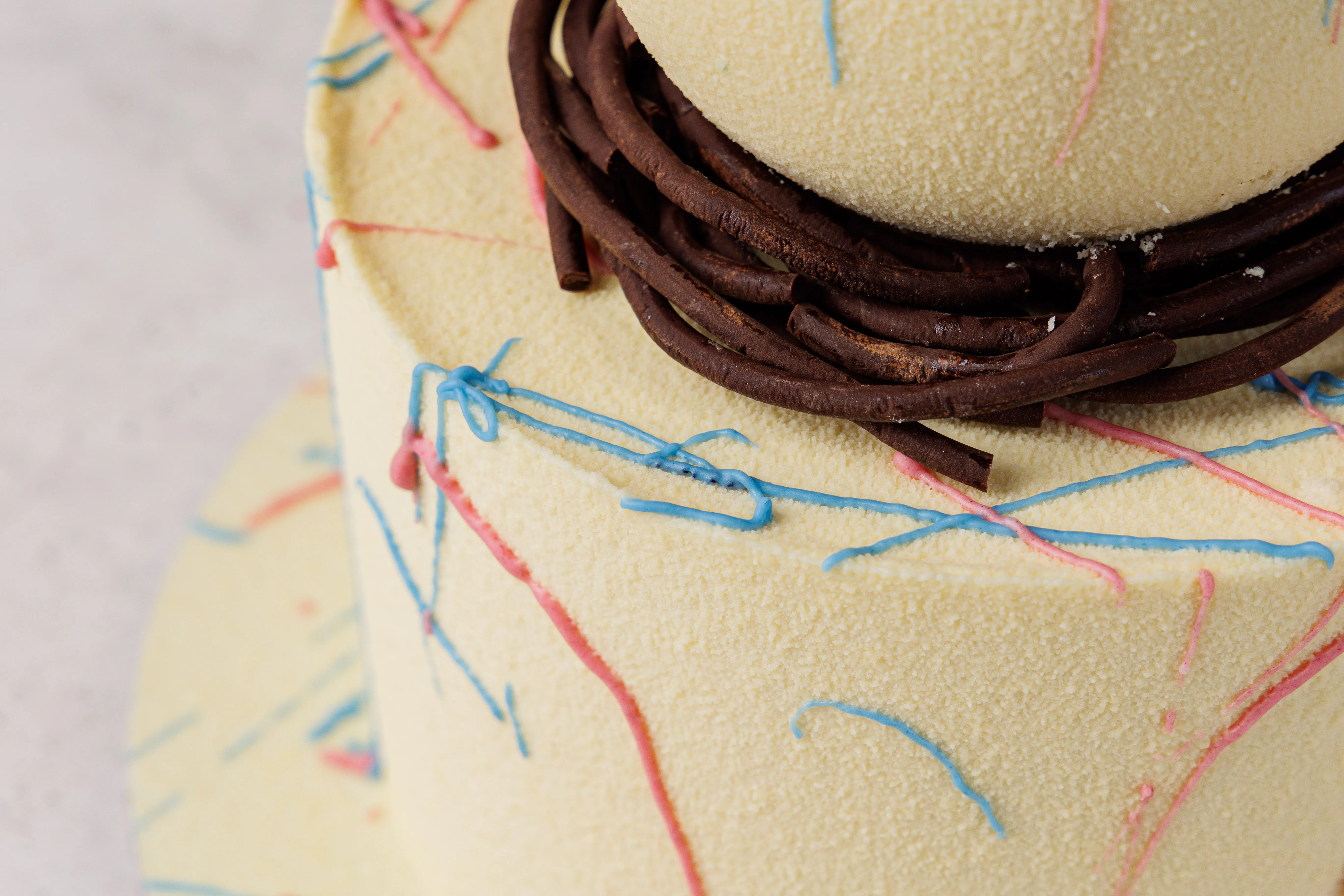 Начинка Миндальная с грильяжным кремом: бисквит: (белок яичный, сахар, миндаль, кукурузный крахмал), крем (сметана м.д.ж.30%(нормализованные, пастеризованные сливки с использованием закваски чистых культур молочнокислых микроорганизмов), сливки м.д.ж.33% (сливки нормализованные), вареная сгущенка (молоко нормализированное, сыворотка молочная, сахар (сахароза), мед натуральный, сахар. Покрытие крем: сливки натуральные м.д.ж. 33% (сливки нормализованные),творожный сыр (нормализованное пастеризованное коровье молоко, бактериальная закваска, молокосвертывающий фермент микробного происхождения), загуститель, стабилизатор (камедь рожкового дерева и гуаровая камедь), регулятор кислотности лимонная кислота, соль поваренная пищевая, вода питьевая)