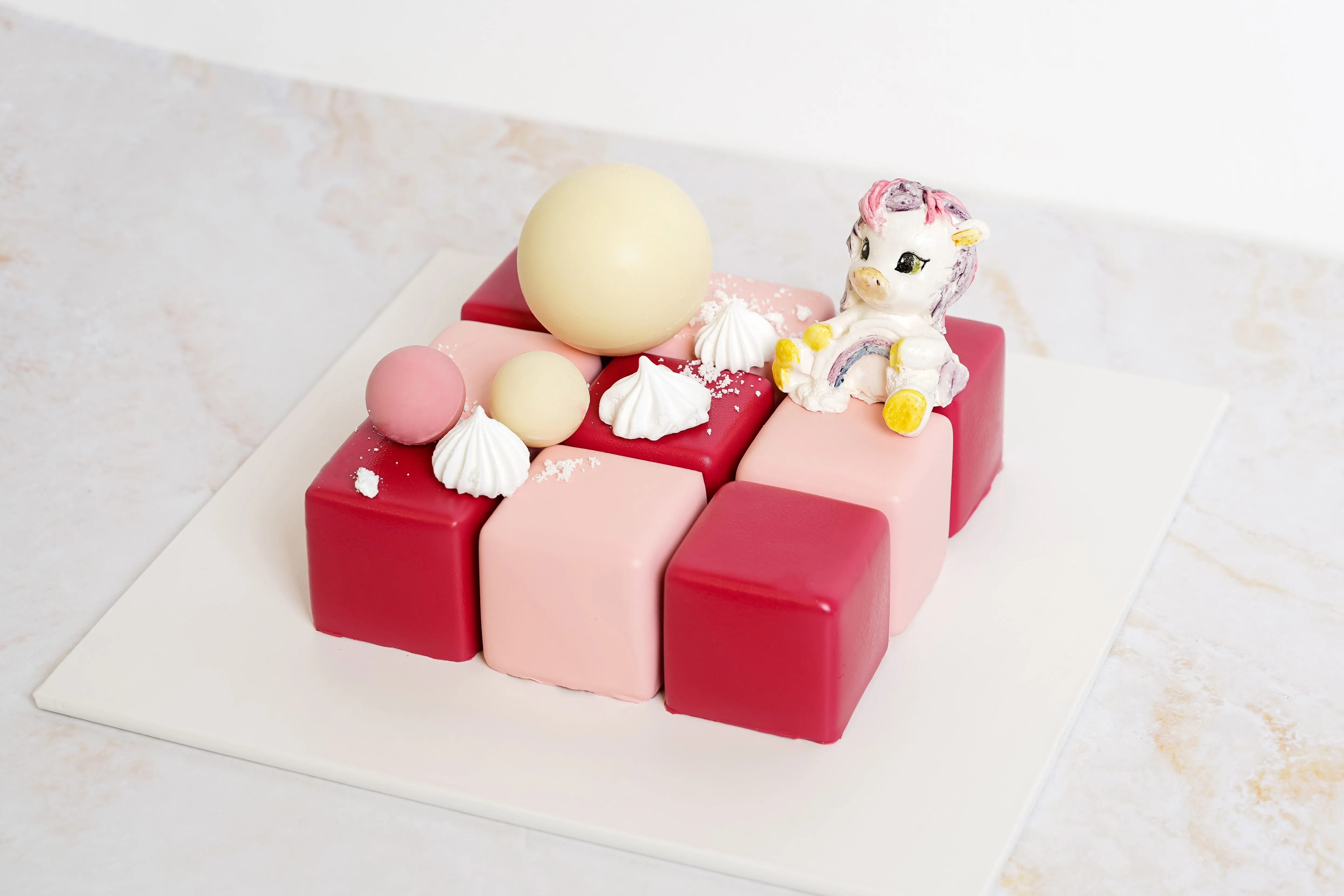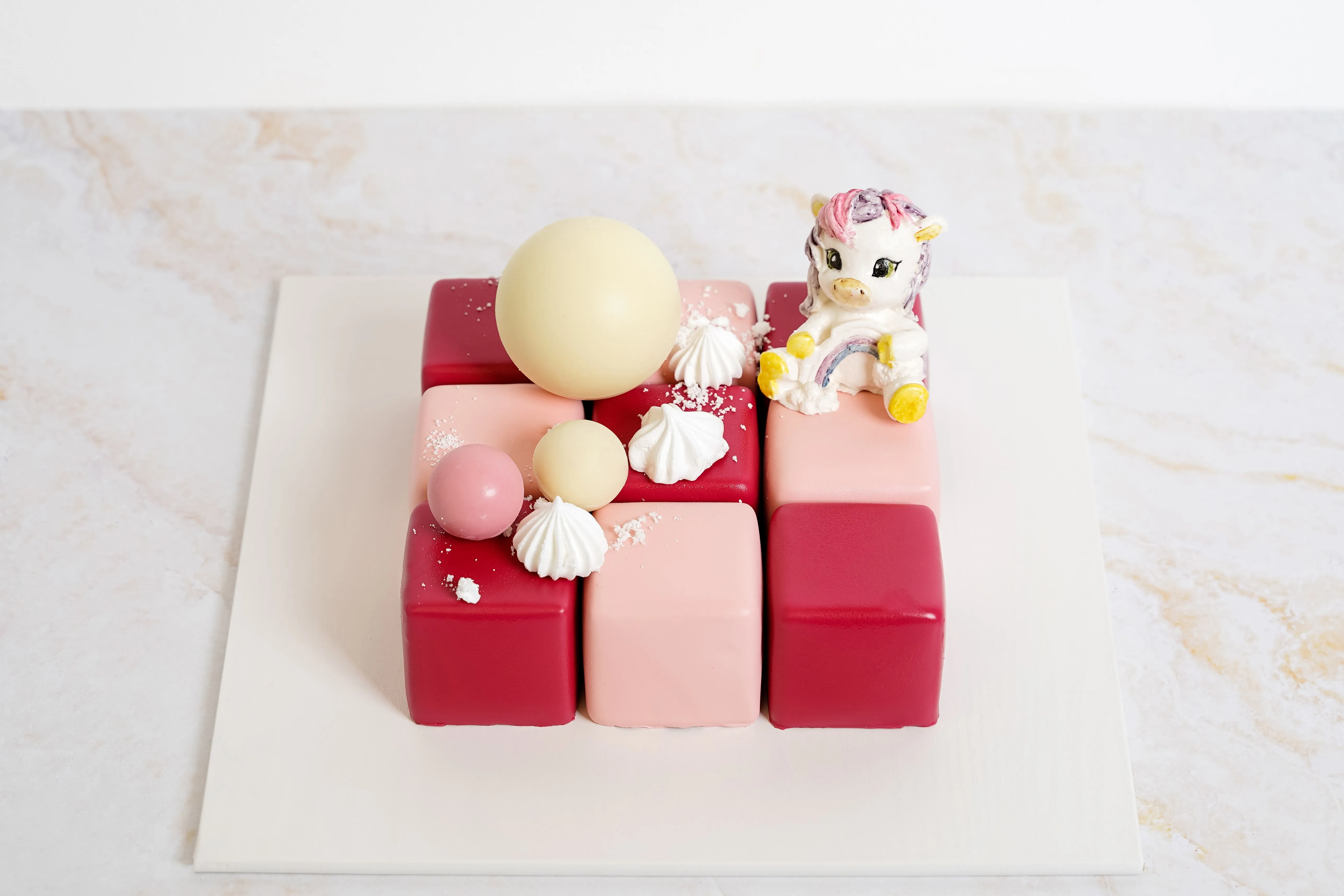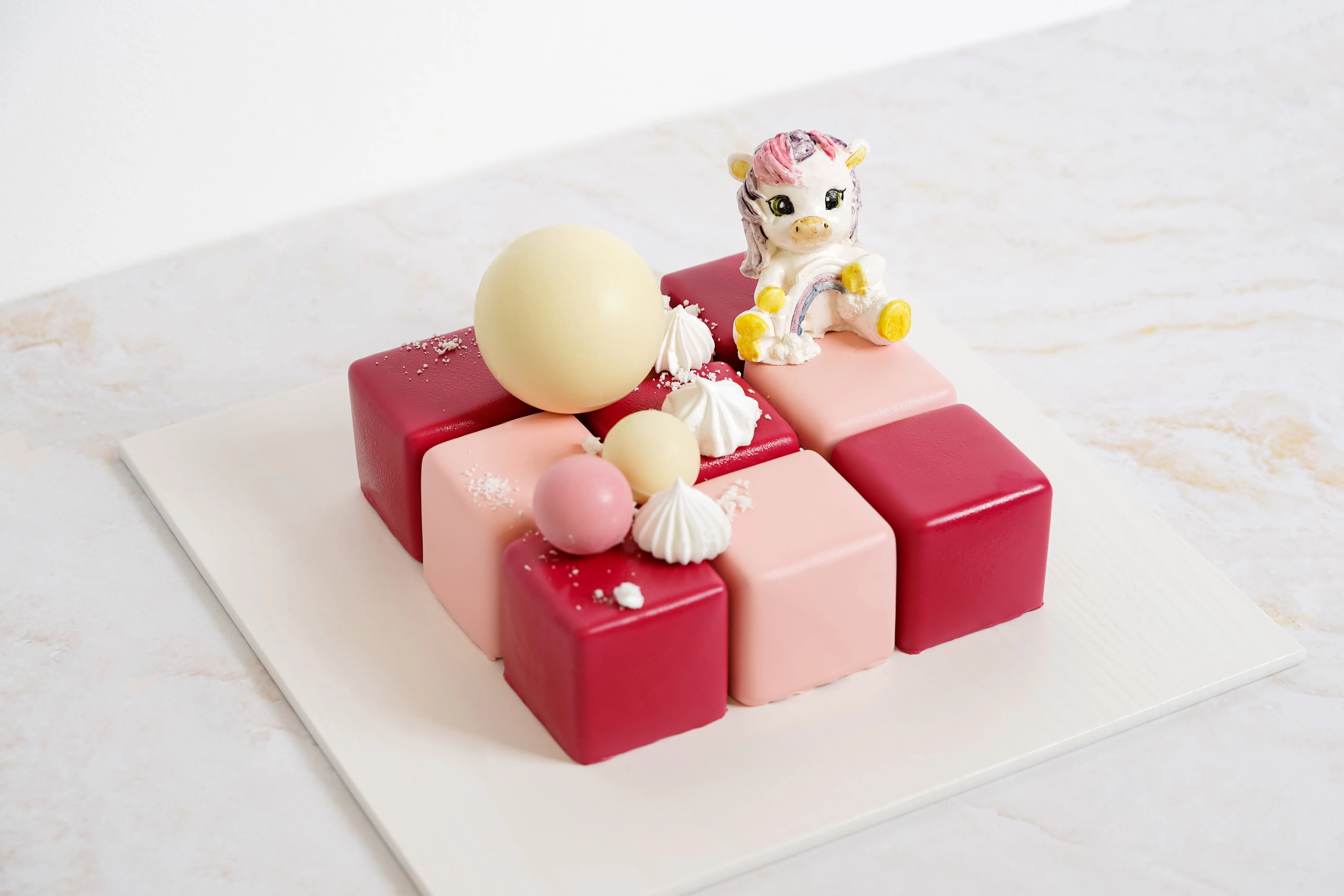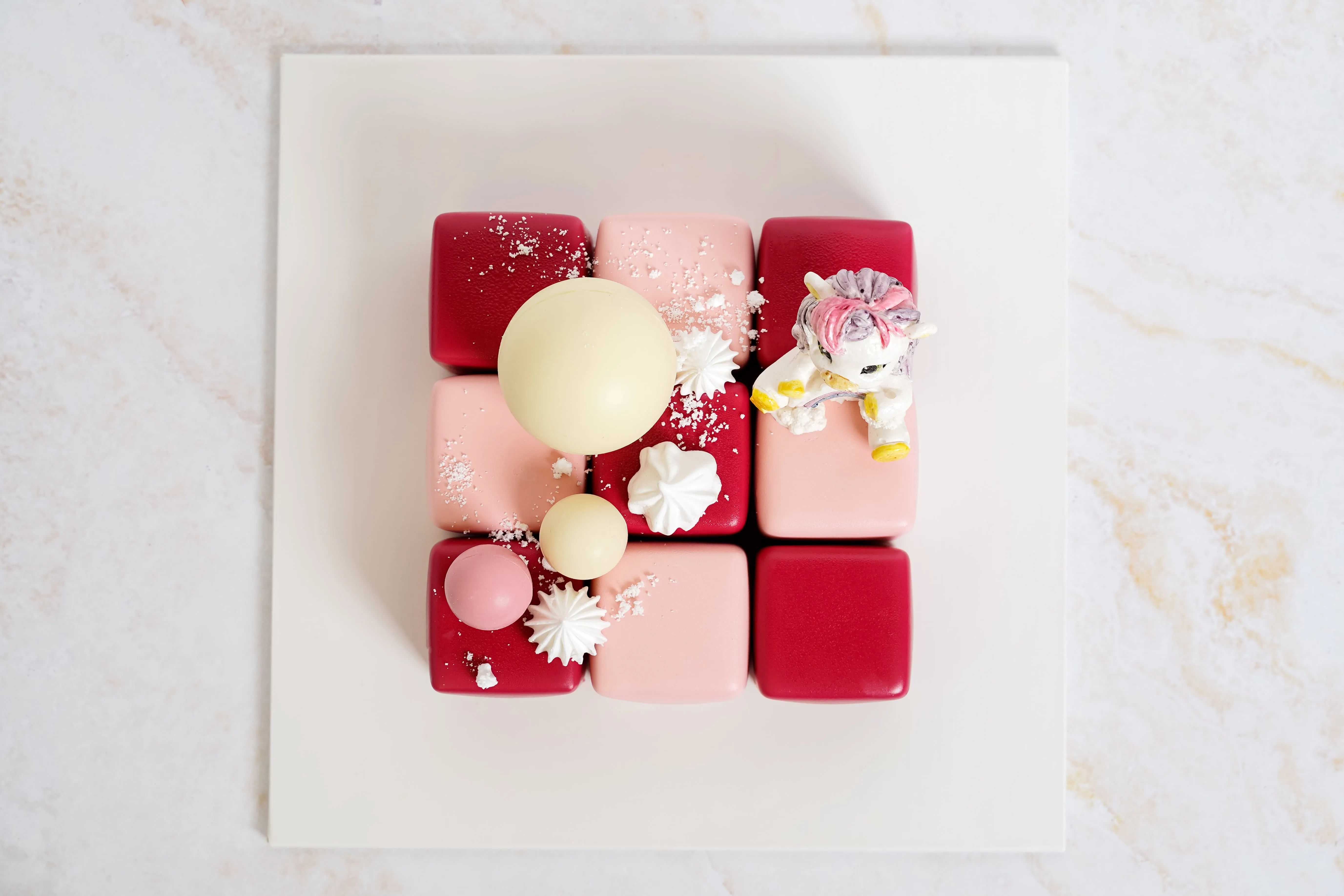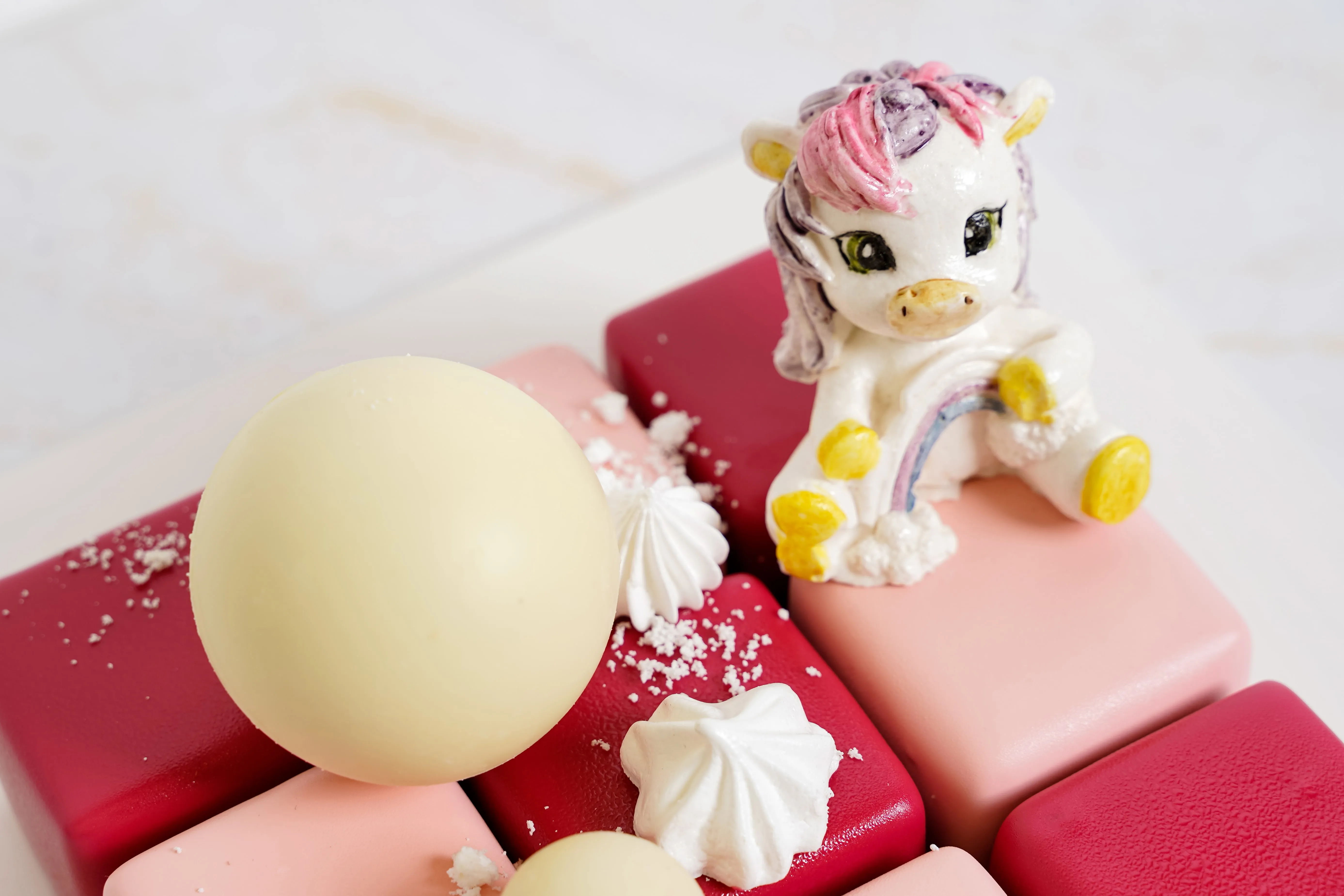 Фигурка из зефира: сахар; пюре яблочное; пастеризованный яичный белок; желирующий агент агар-агар; лимонная кислота; кармин, экстракт сафлора, экстракт спирулины, экстракт сафлора, уголь растительный, антоциан, экстракт генипы.