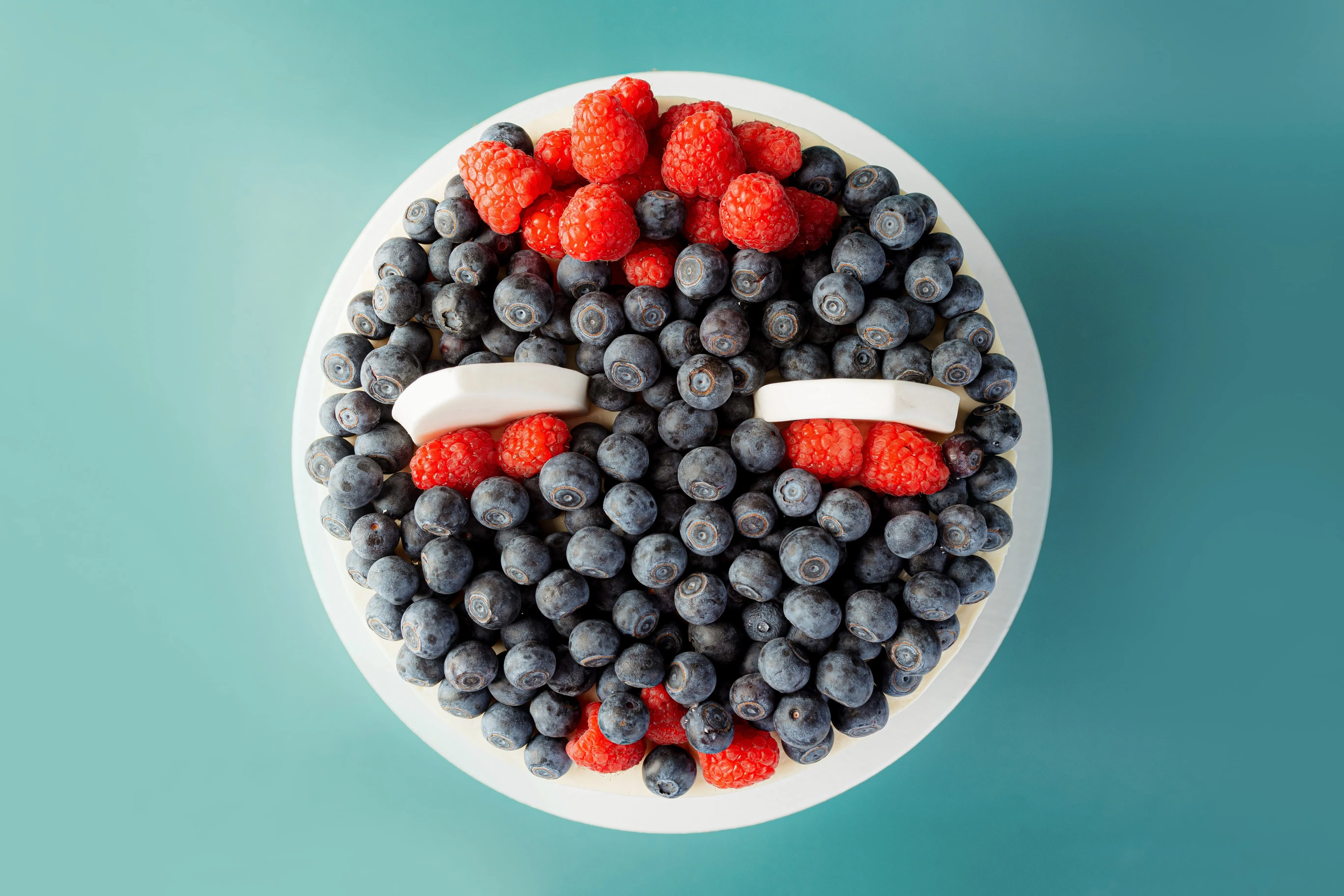 Покрытие: сливки натуральные м.д.ж. 33% (сливки нормализованные), сыр творожный (творог (нормализованное пастеризованное молоко, закваска, молокосвертывающий фермент микробного происхождения), сахар, угольный краситель. Ягоды: малина свежая, голубика свежая Декор (ушки котика): сахарная пудра, вода, желатин, патока.