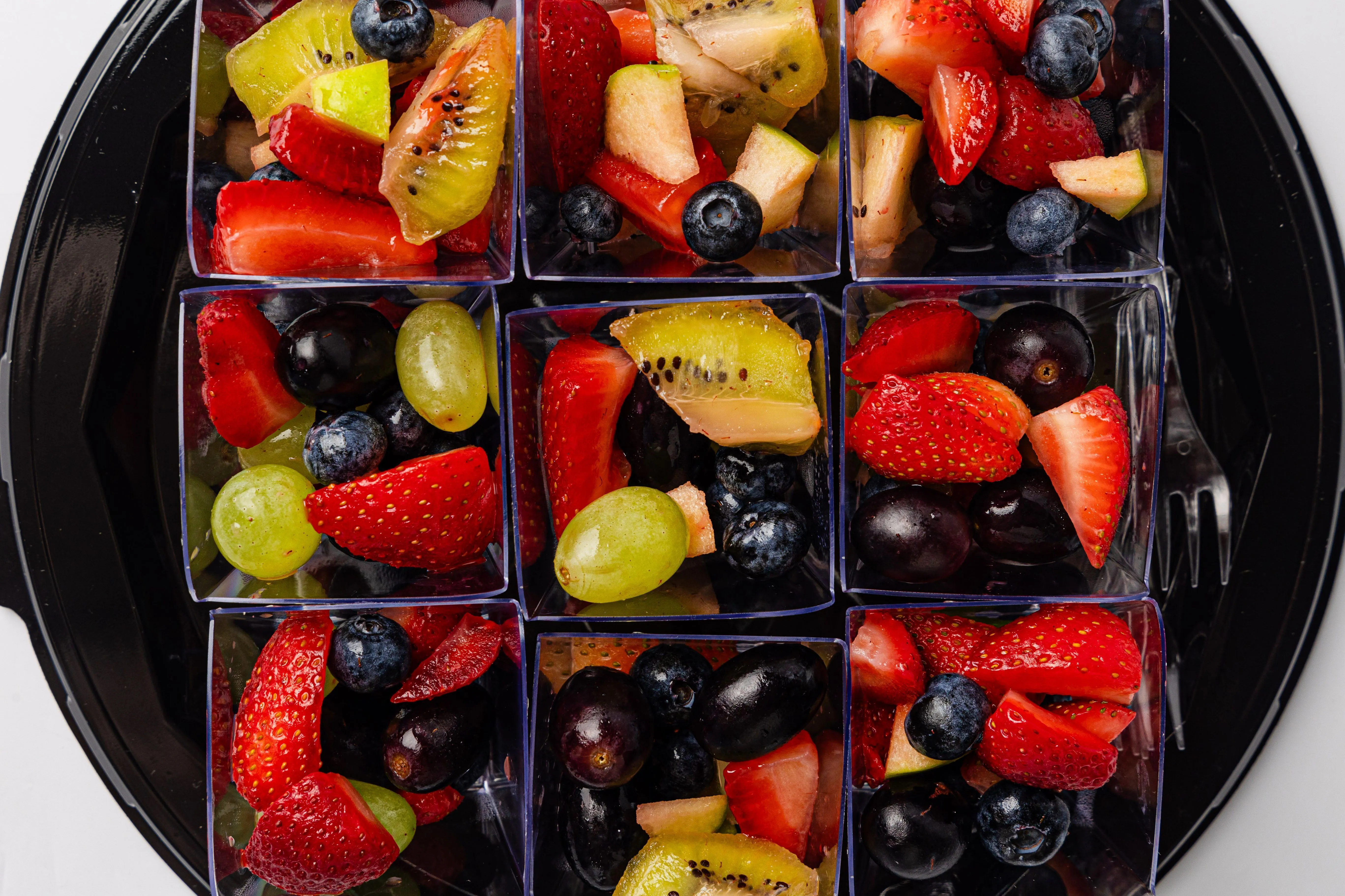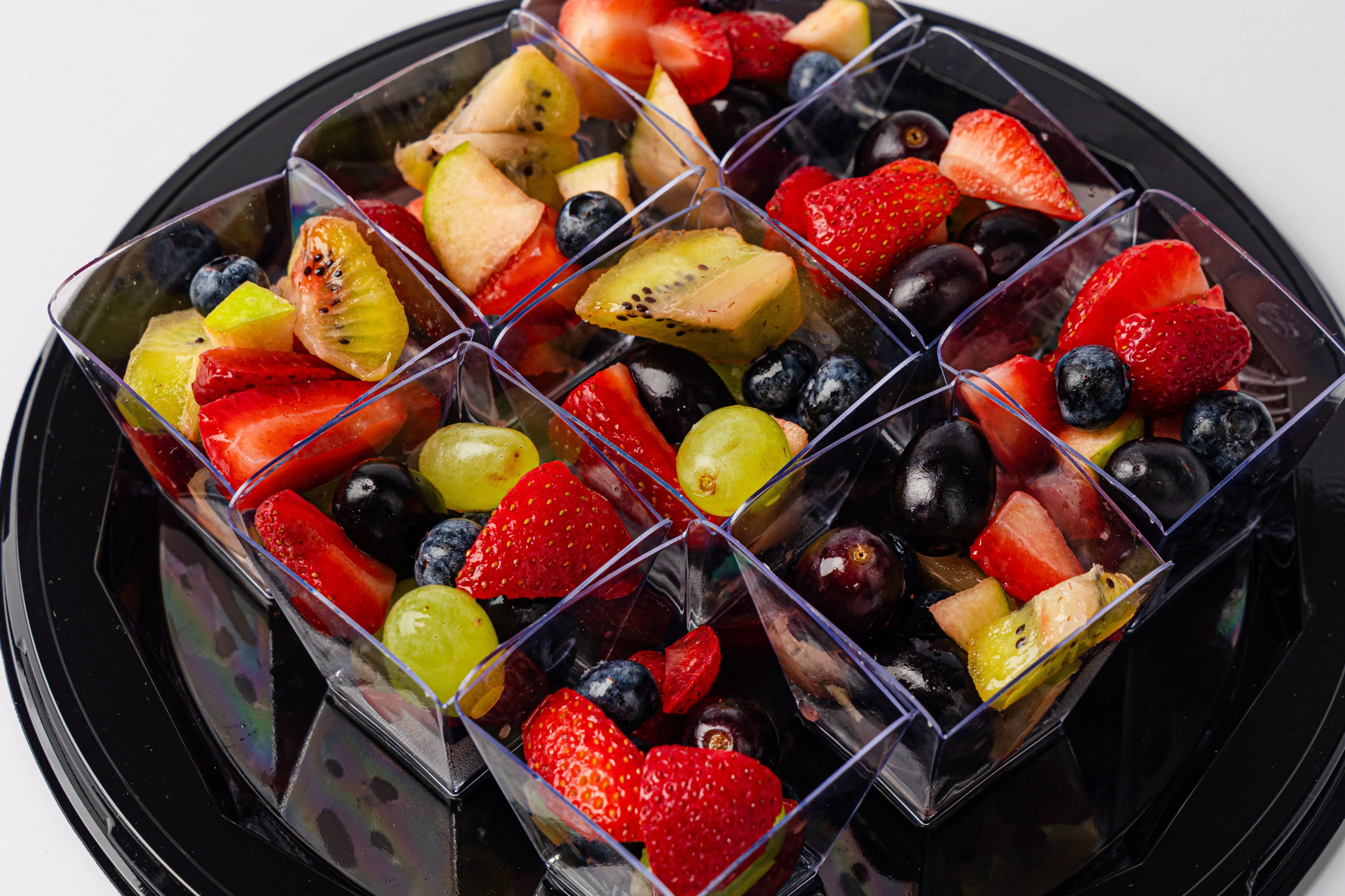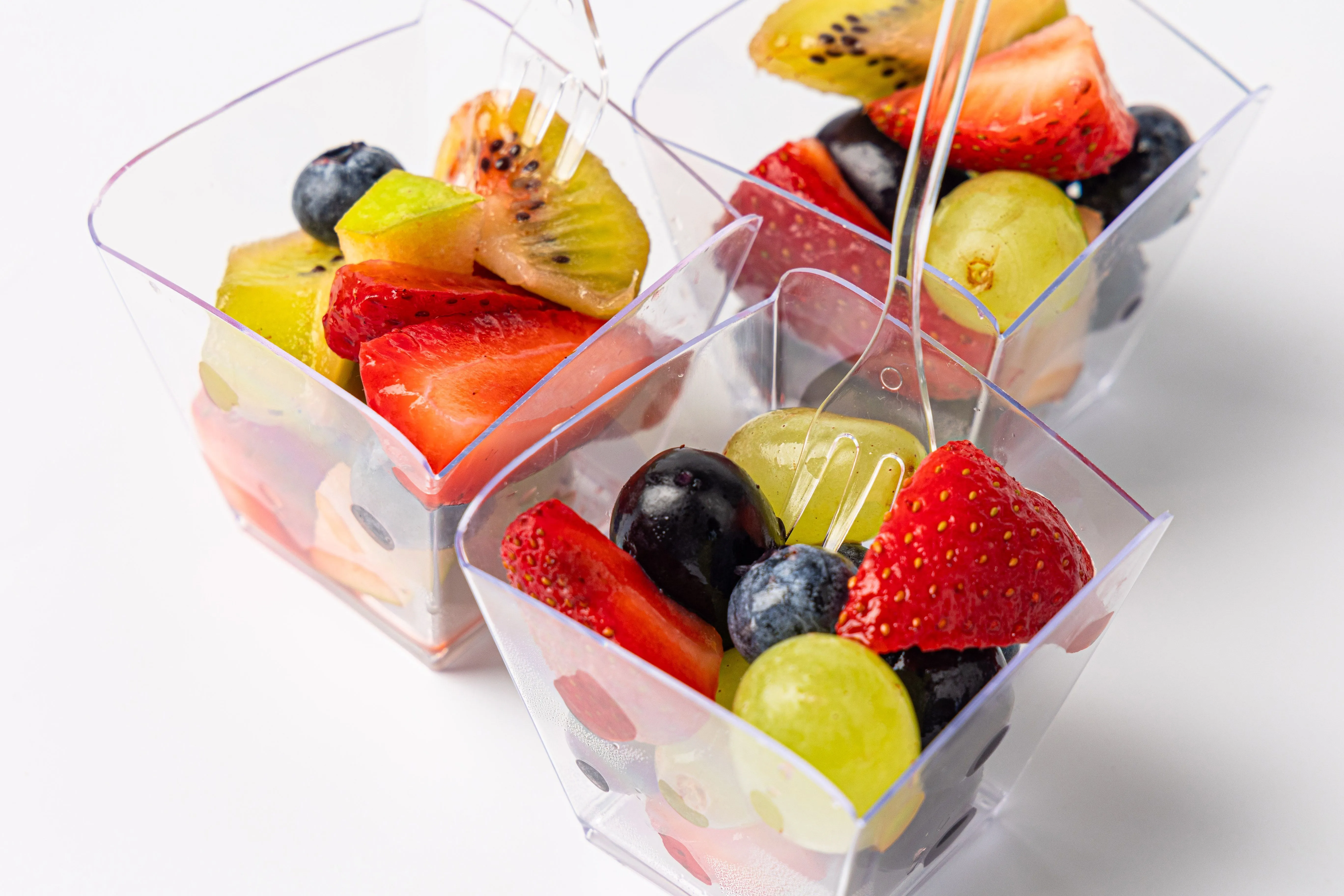 Фруктовые салаты в стаканчиках — это свежесть и вкус в удобной порционной подаче. В каждом стаканчике вы найдете микс сочных и ярких фруктов, идеально нарезанных для легкого и аппетитного перекуса. Эти салаты — идеальный выбор для фуршетов, корпоративов или летних мероприятий, добавляя нотку натуральной сладости и радости в ваш день.
