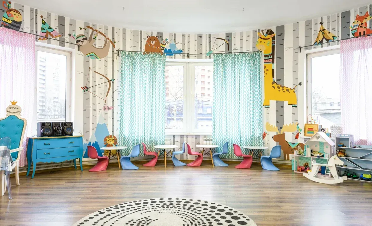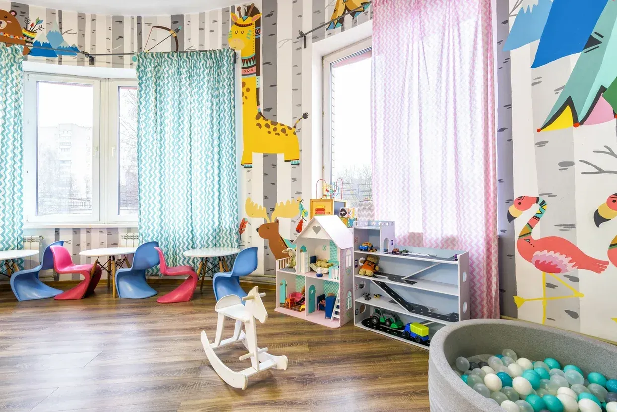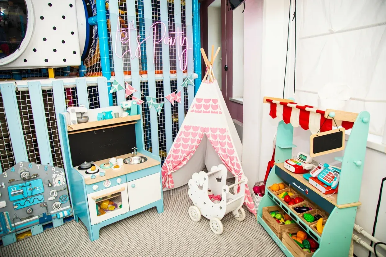 Бассейн с шариками и 2 зоны спокойных игр для самых юных гостей. Большое свободное пространство для игр.